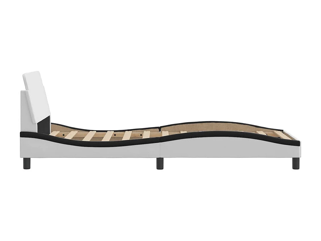 Lit simple + tête de lit blanc et noir 90x200cm similicuir FR59059