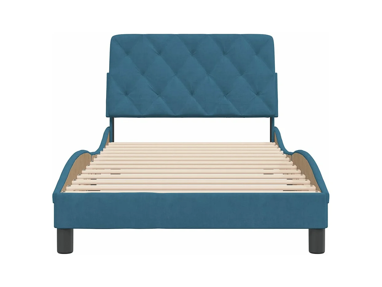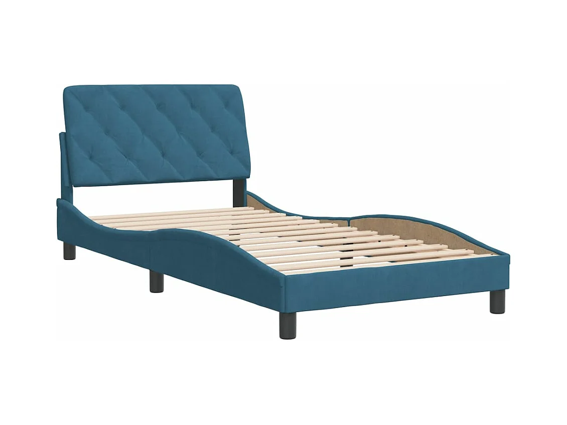 Lit simple + tête de lit bleu 100x200 cm velours FR16672