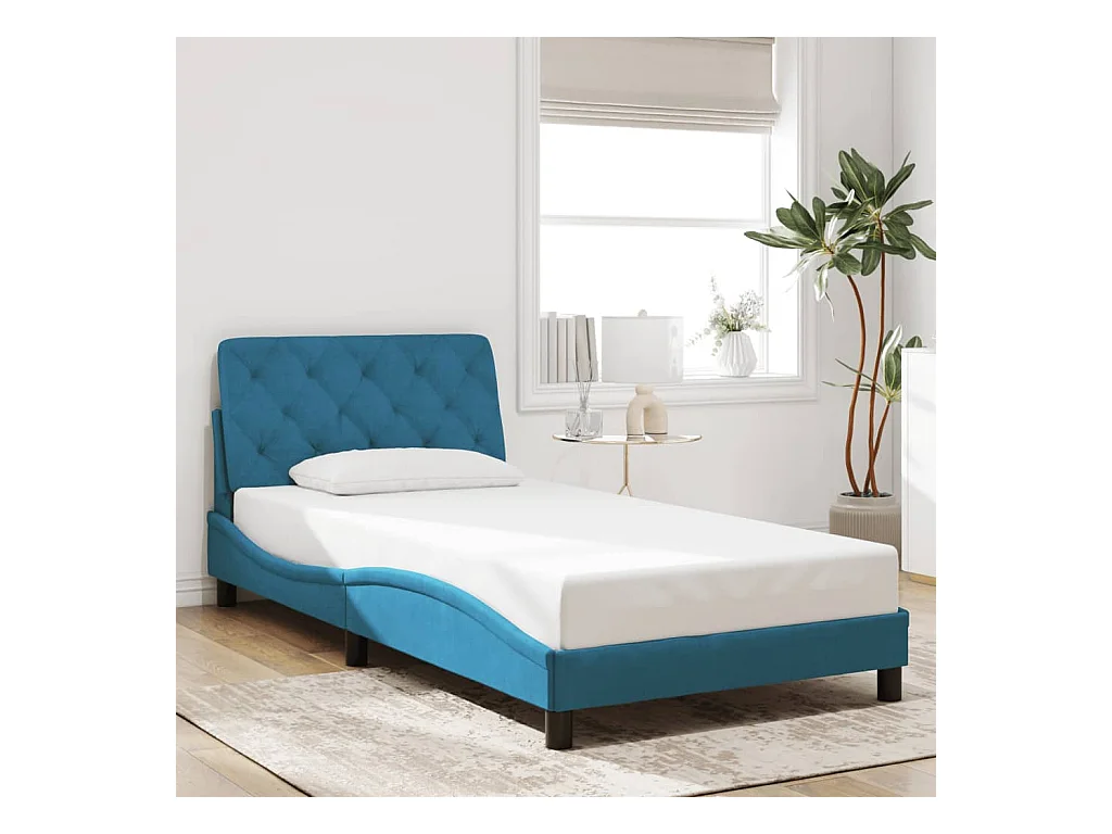 Lit adulte + matelas bleu 100x200 cm velours FR99295
