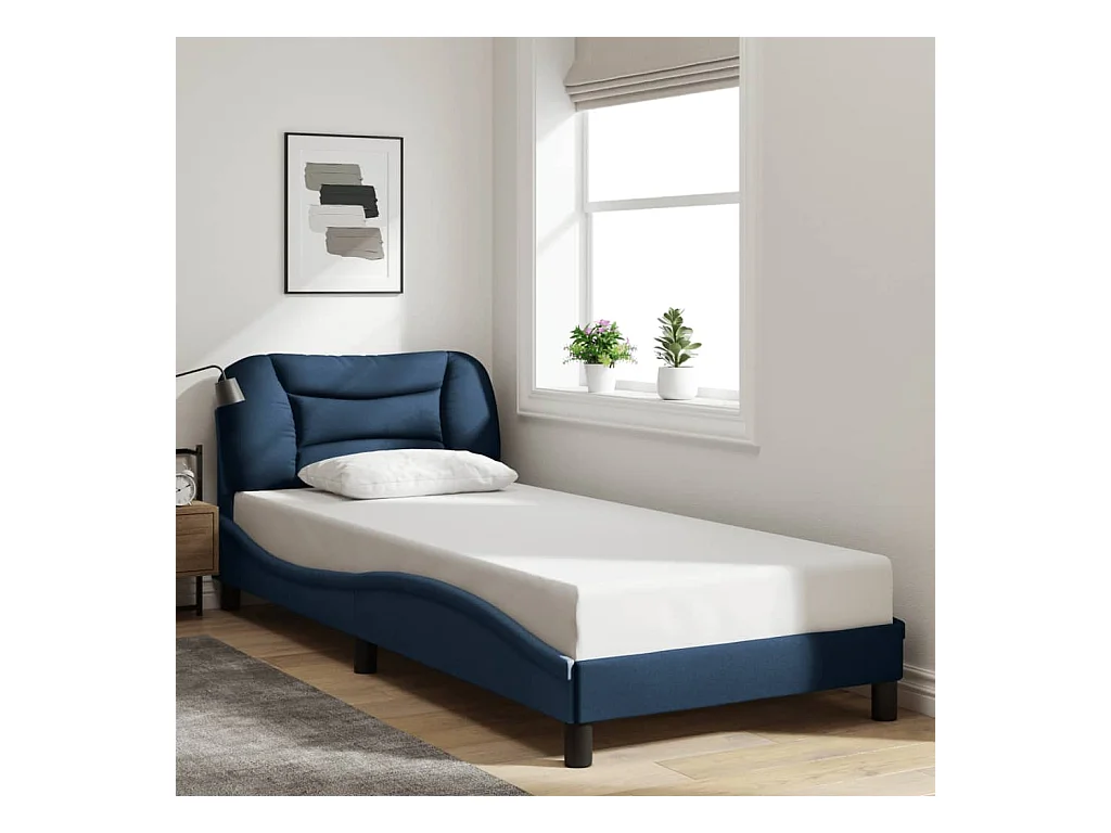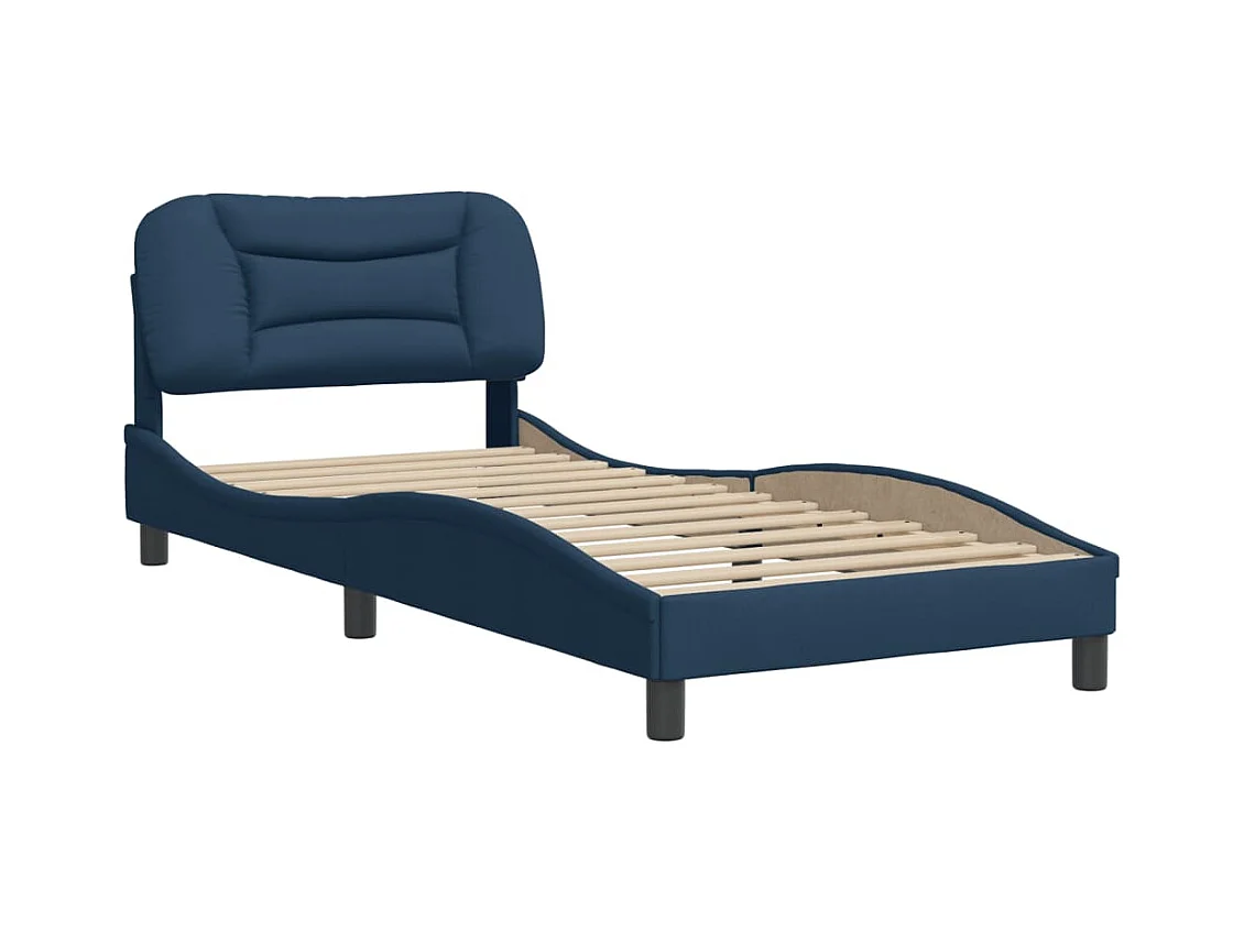 Lit simple + tête de lit Bleu 90x200 cm Tissu FR99355