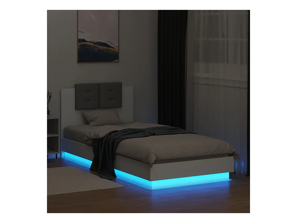 Lit simple + tête de lit et lumières LED blanc 100x200 cm FR31872