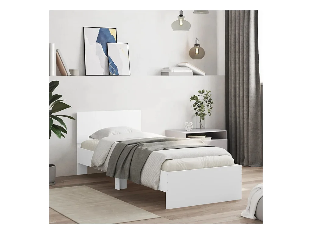 Lit simple + tête de lit et lumières LED blanc 75x190 cm FR92086