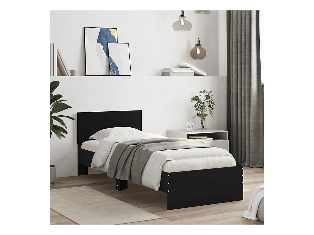 Lit simple + tête de lit et lumières LED noir 75x190 cm FR86531