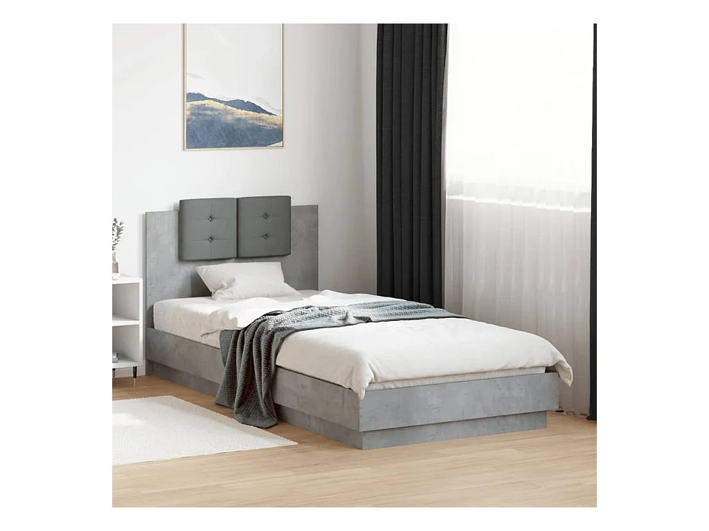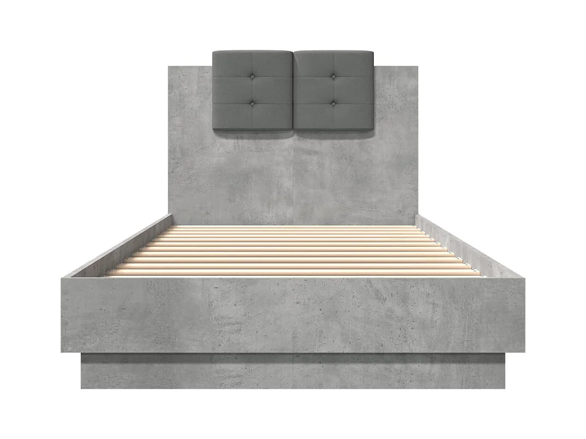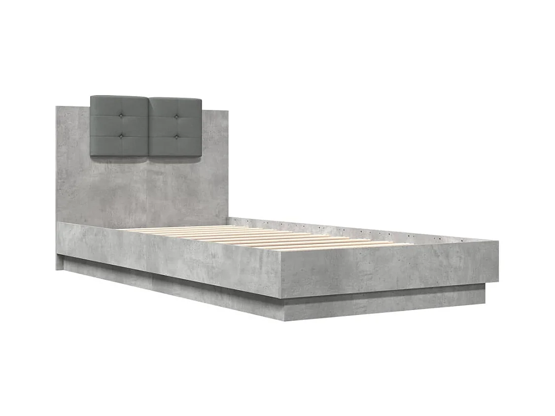 Lit simple + tête de lit gris béton 90x200 cm FR51221