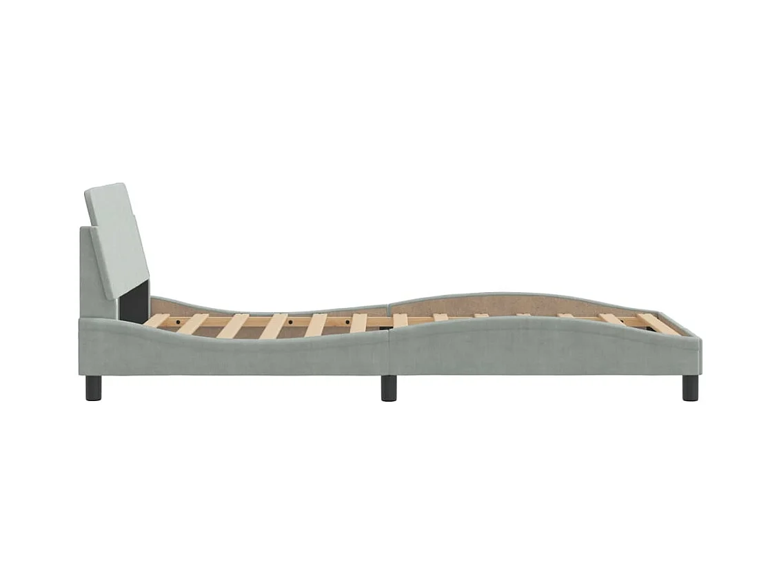 Lit simple + tête de lit Gris clair 100x200 cm Velours FR70485