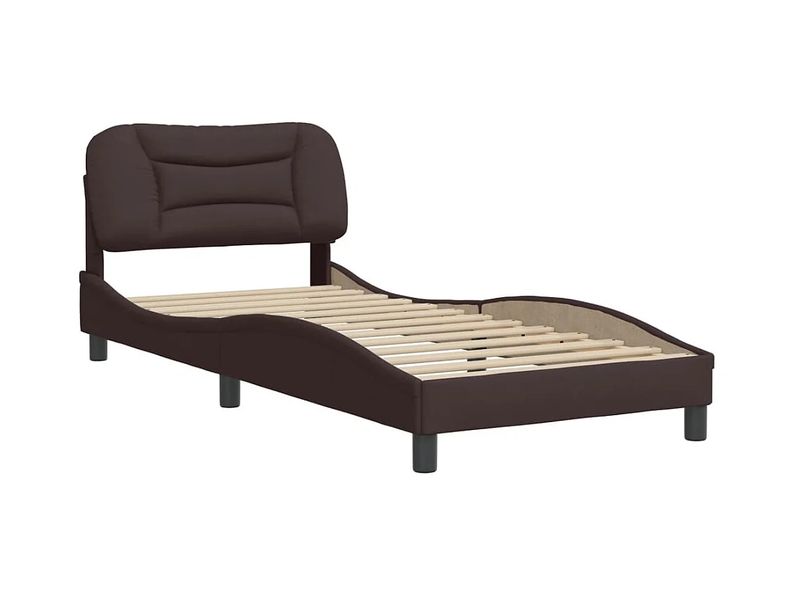 Lit adulte + matelas marron foncé 80x200 cm tissu FR84455