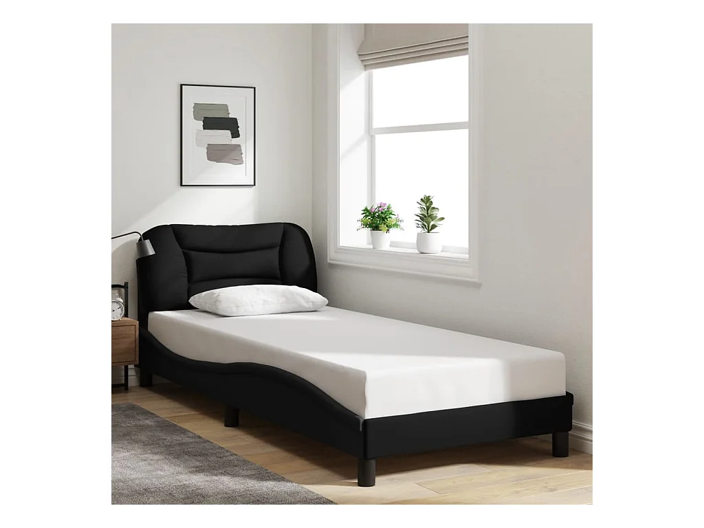 Lit simple + tête de lit Noir 80x200 cm Tissu FR43342