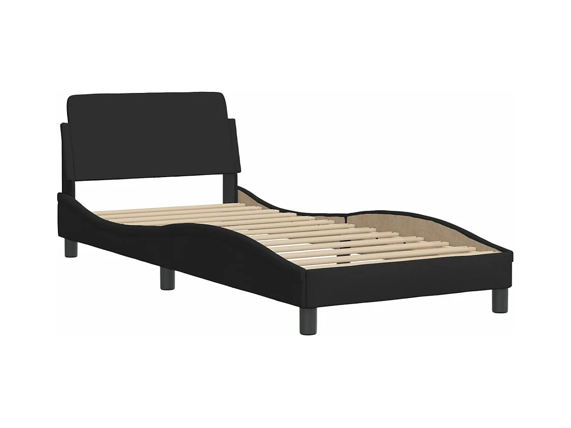 Lit simple + tête de lit Noir 80x200 cm Tissu FR73238