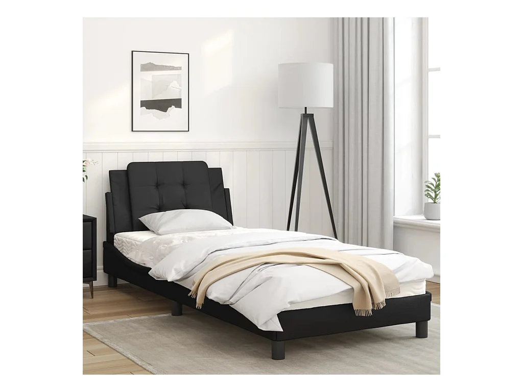 Lit adulte + matelas noir 90x190 cm similicuir FR96360