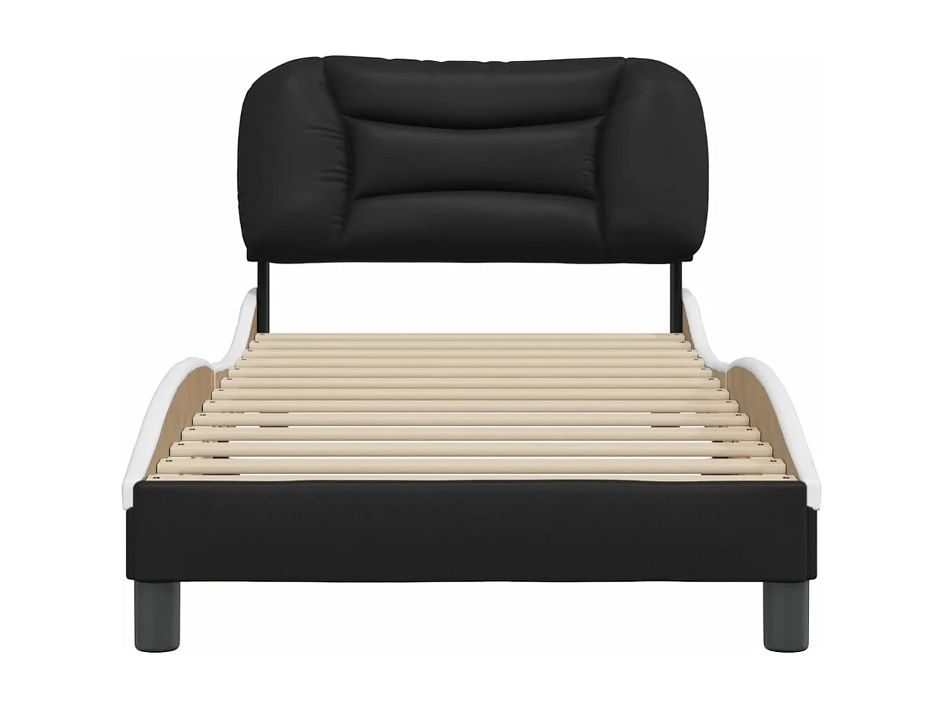 Lit simple + tête de lit noir et blanc 90x190cm similicuir FR74447