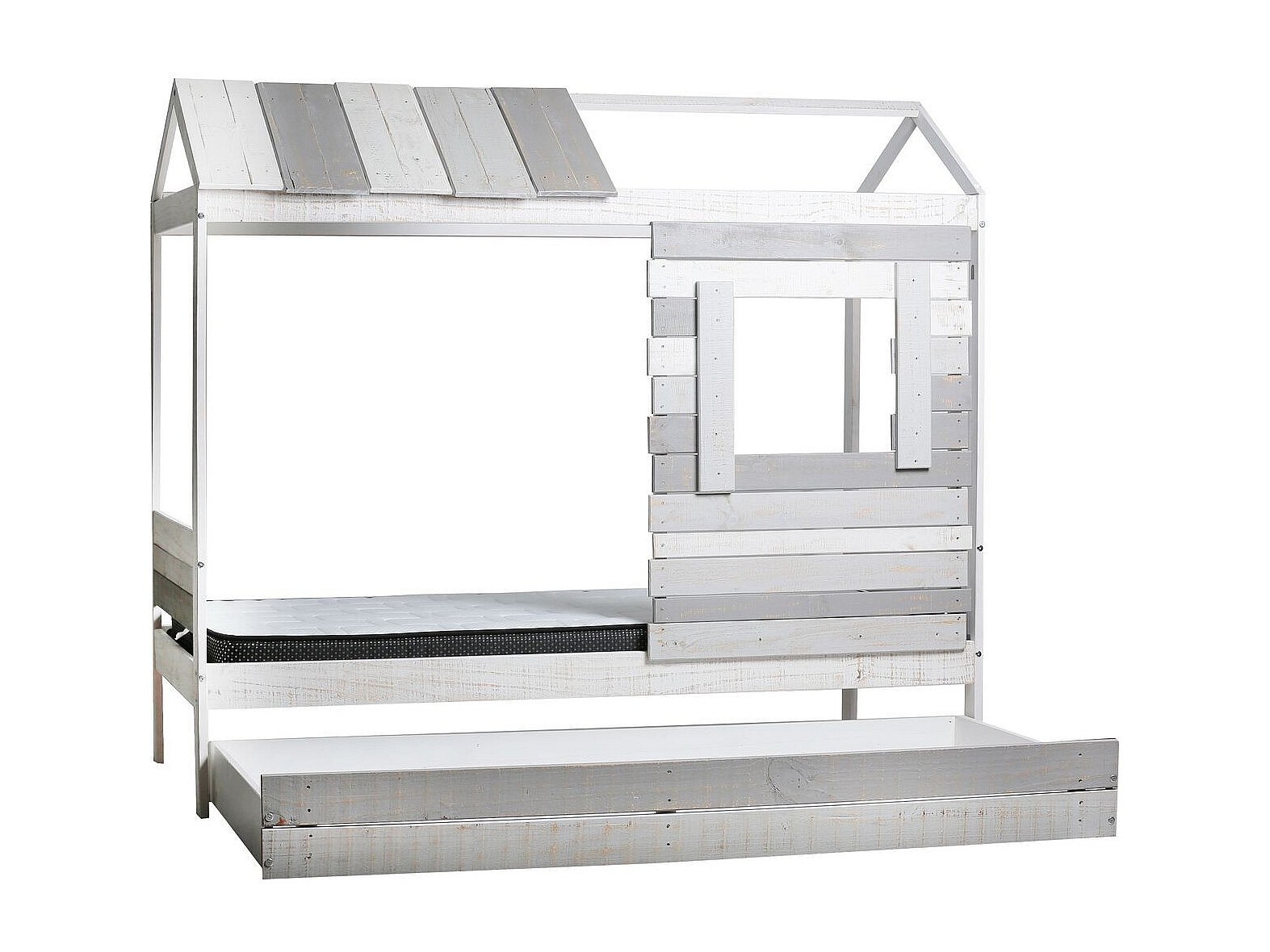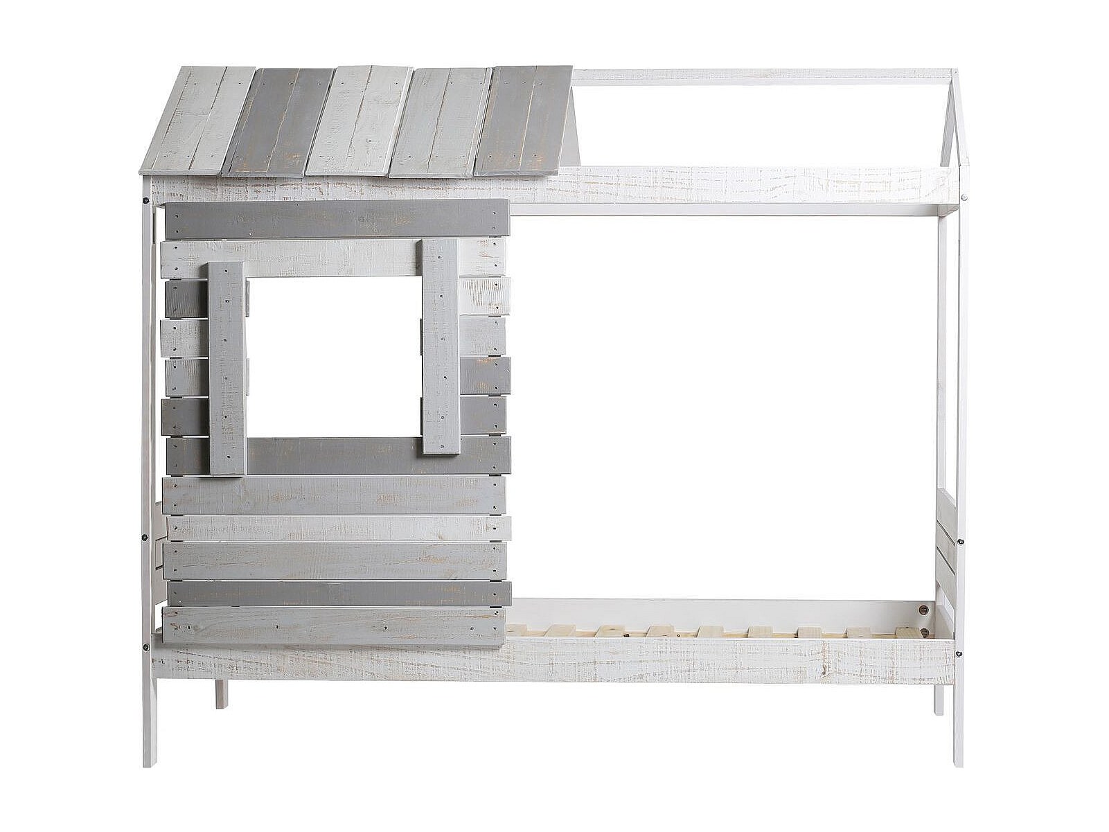 Lit cabane en bois de pin 2x90x200cm - avec toit et sommier à lattes - Blanc