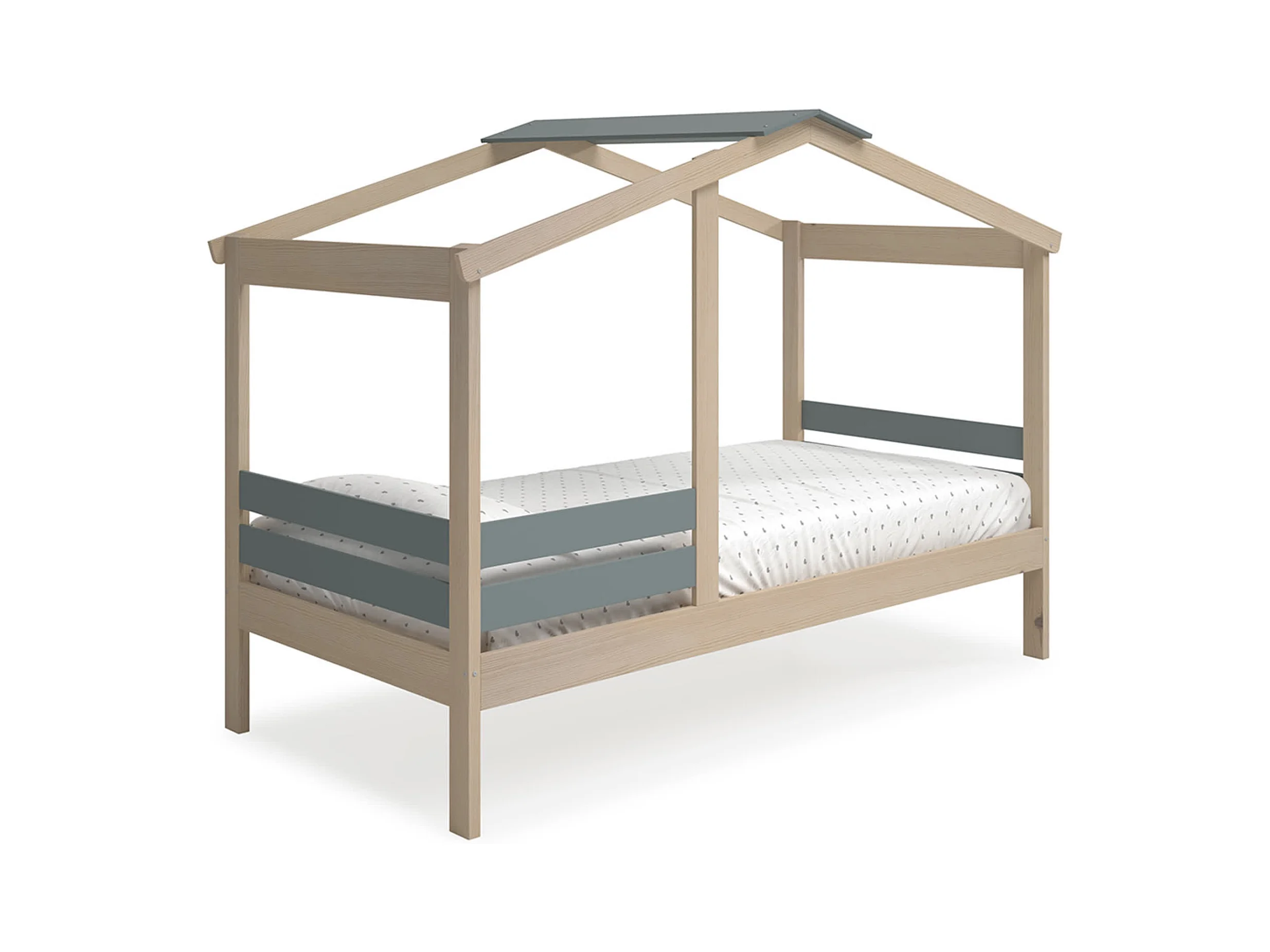 Lit cabane enfant TAHUKA 140 x 200 vert pétrole