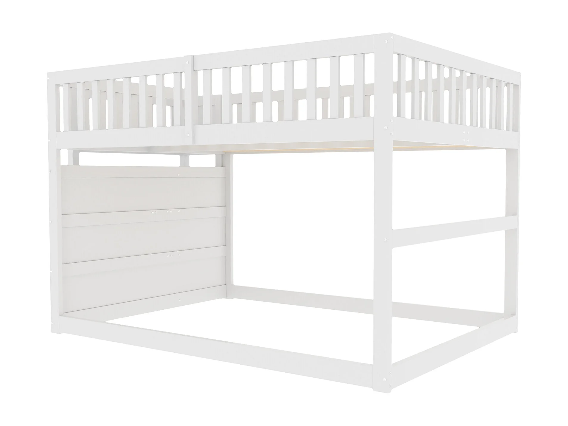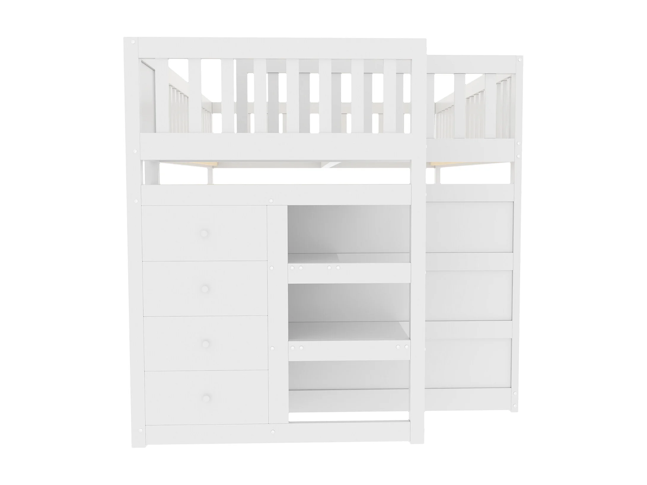 Lit superposé bas 140x200 cm avec escalier et 4 tiroirs, barrière haute, bois, blanc (Sans matelas)