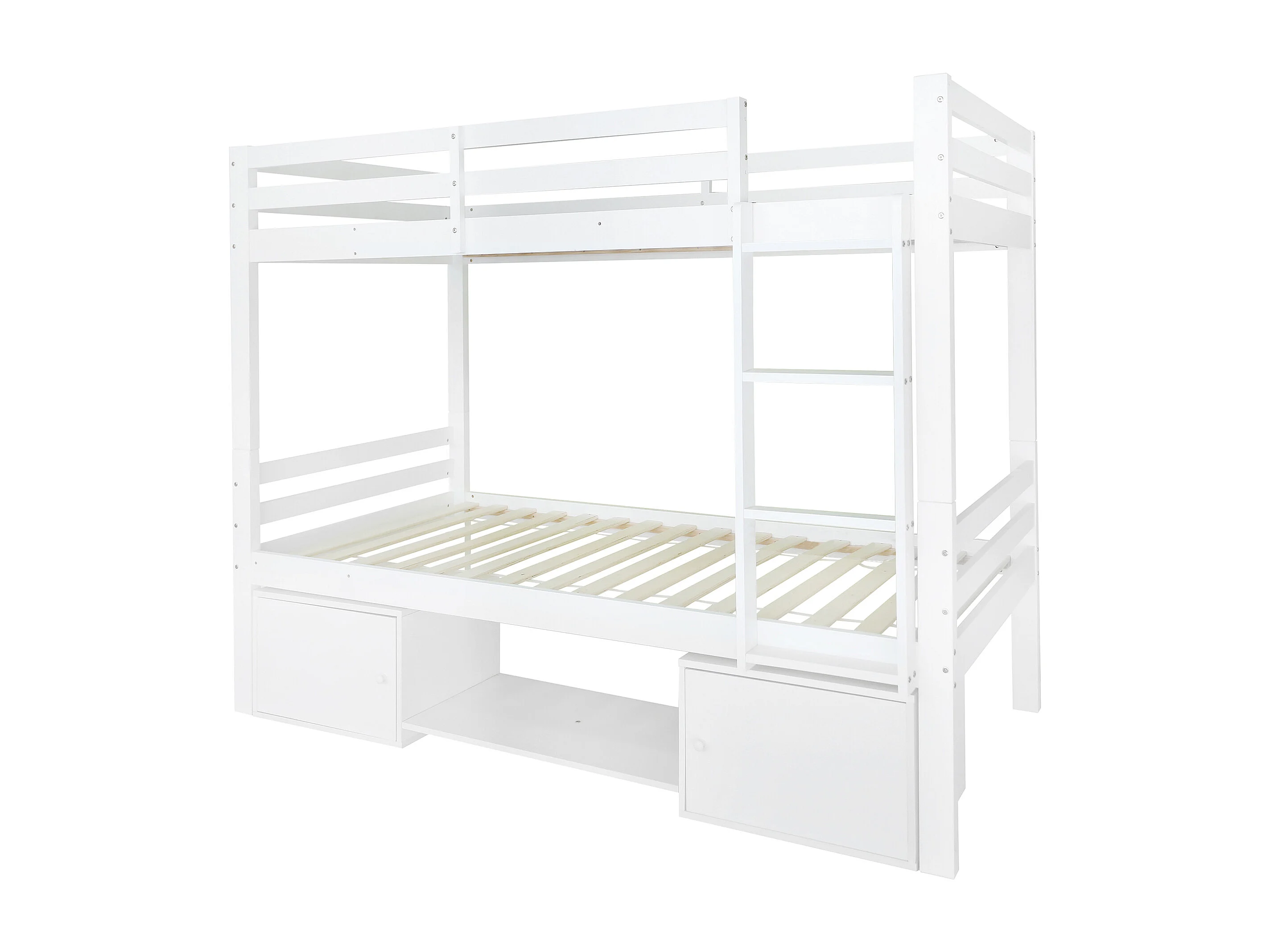 Lit superposé 96×257cm avec cadre sommier à lattes protection anti-chute escalier espace de rangement - MDF - Blanc - (sans matelas)