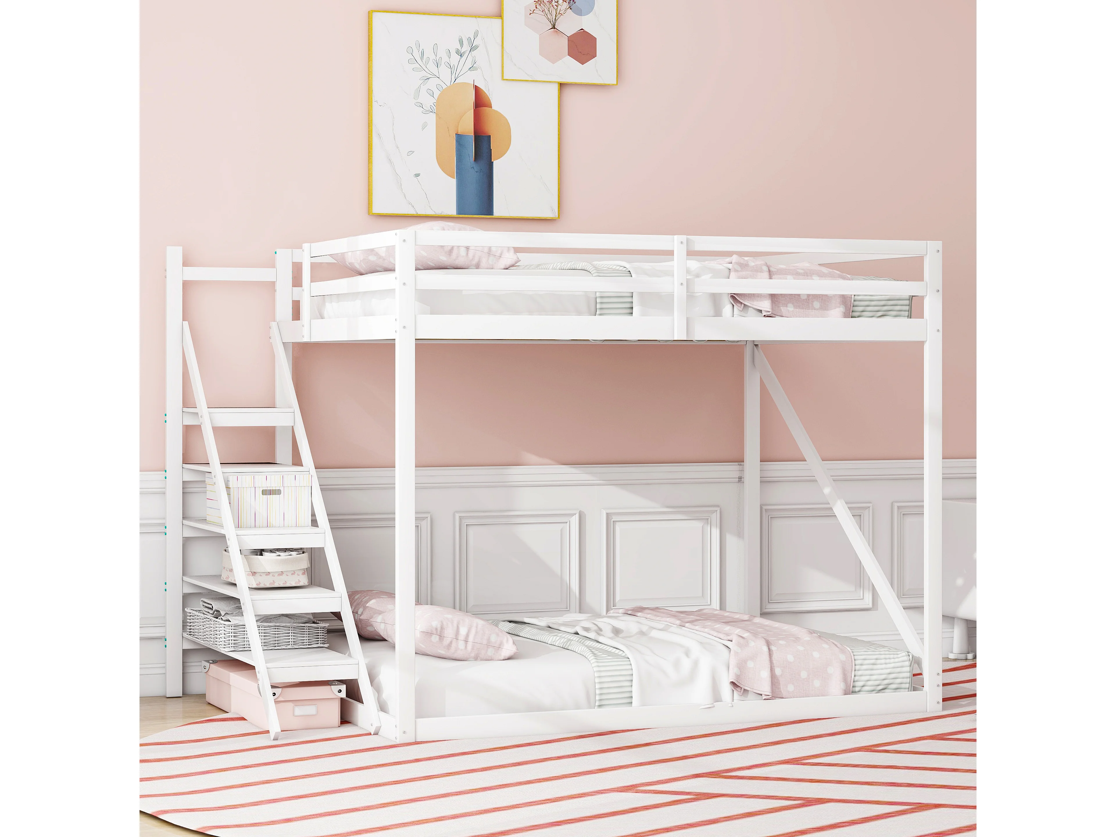 Lit superposé 205x150x147 cm avec échelle et rambarde en blanc pour enfants et adolescents