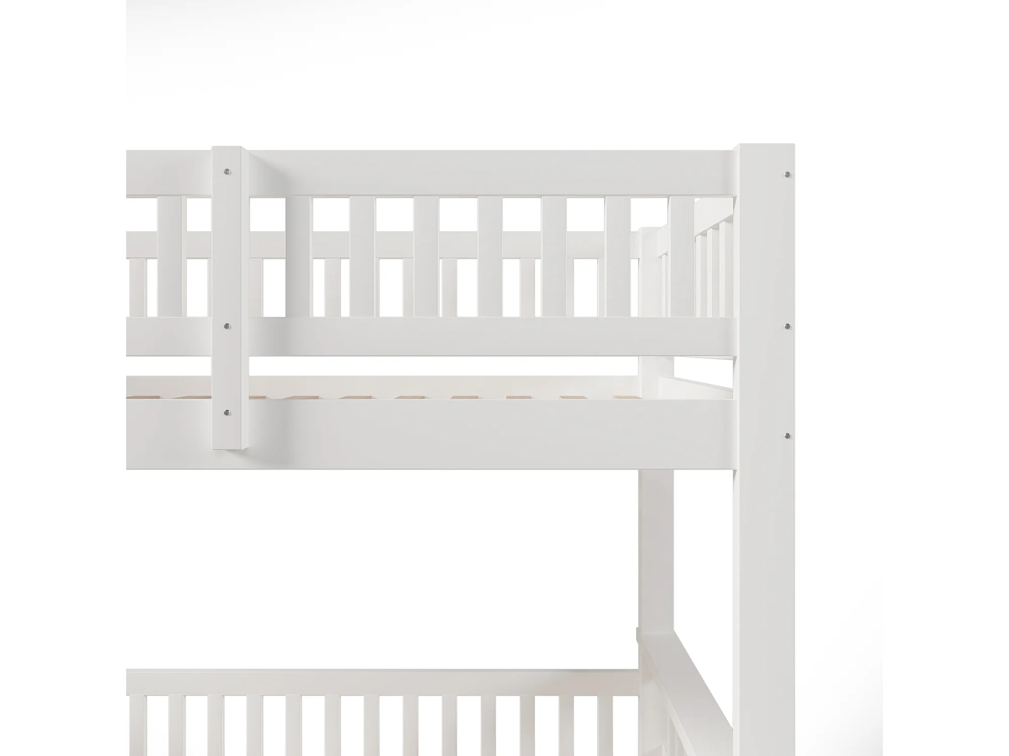 Lit superposé 90/140x200 cm, lit enfant avec échelle et barrière, sommier à lattes - blanc (sans matelas)