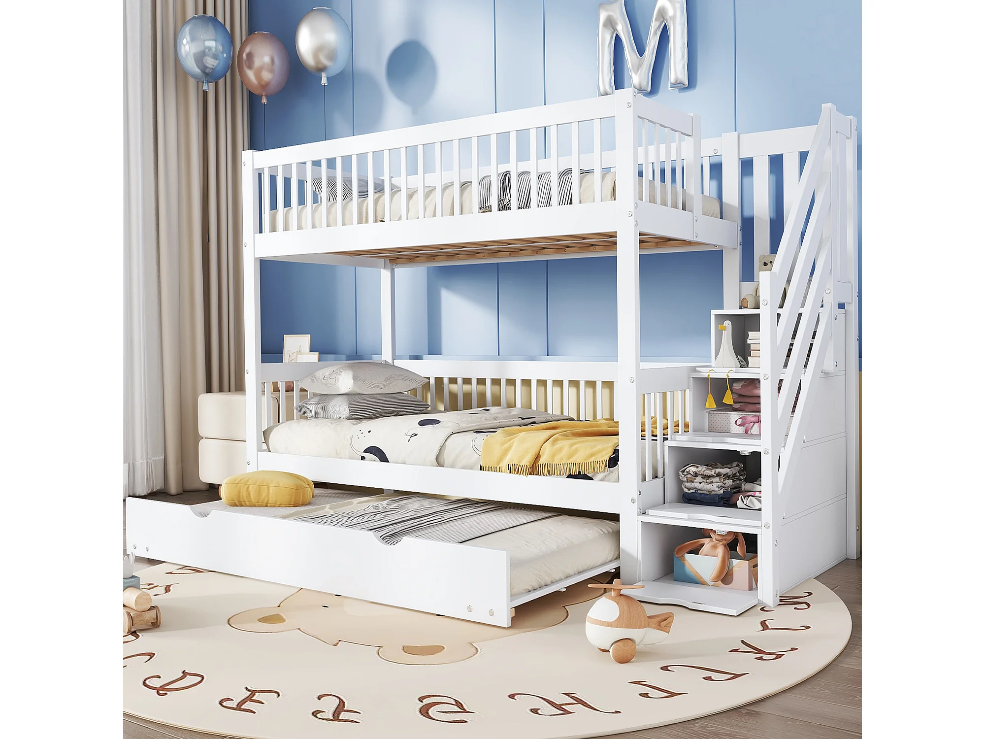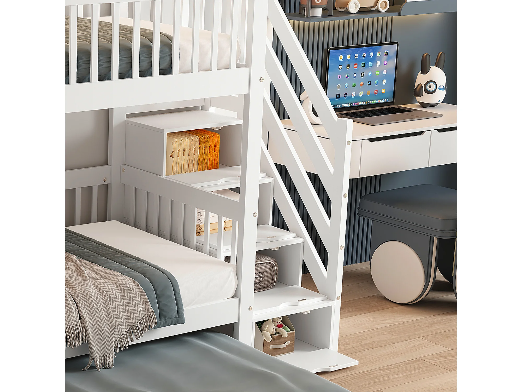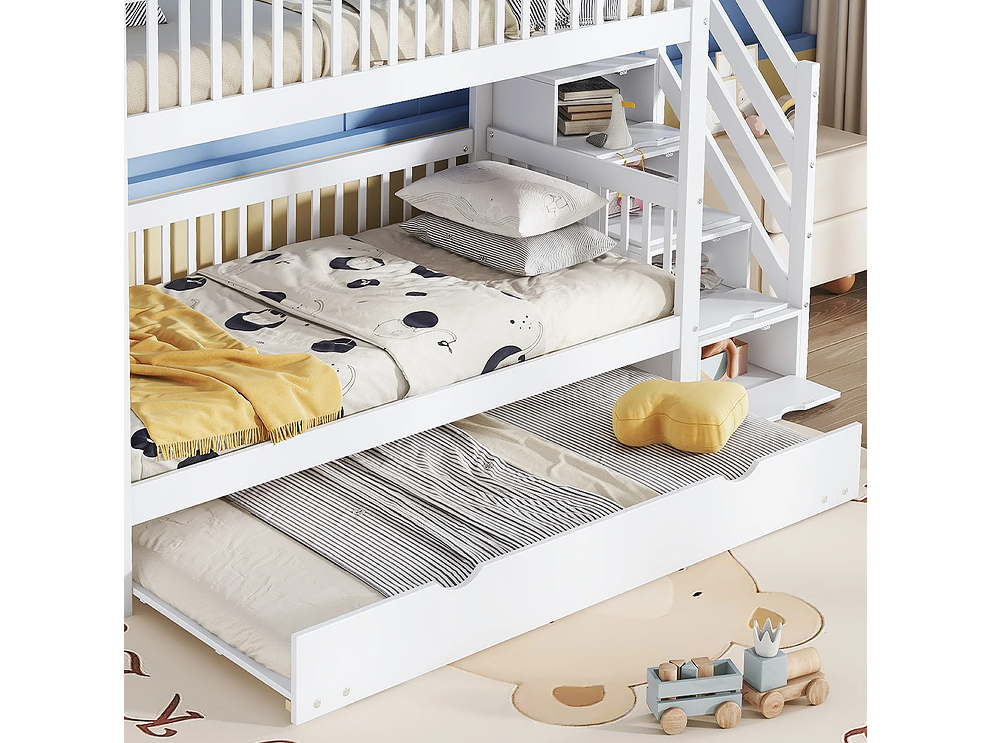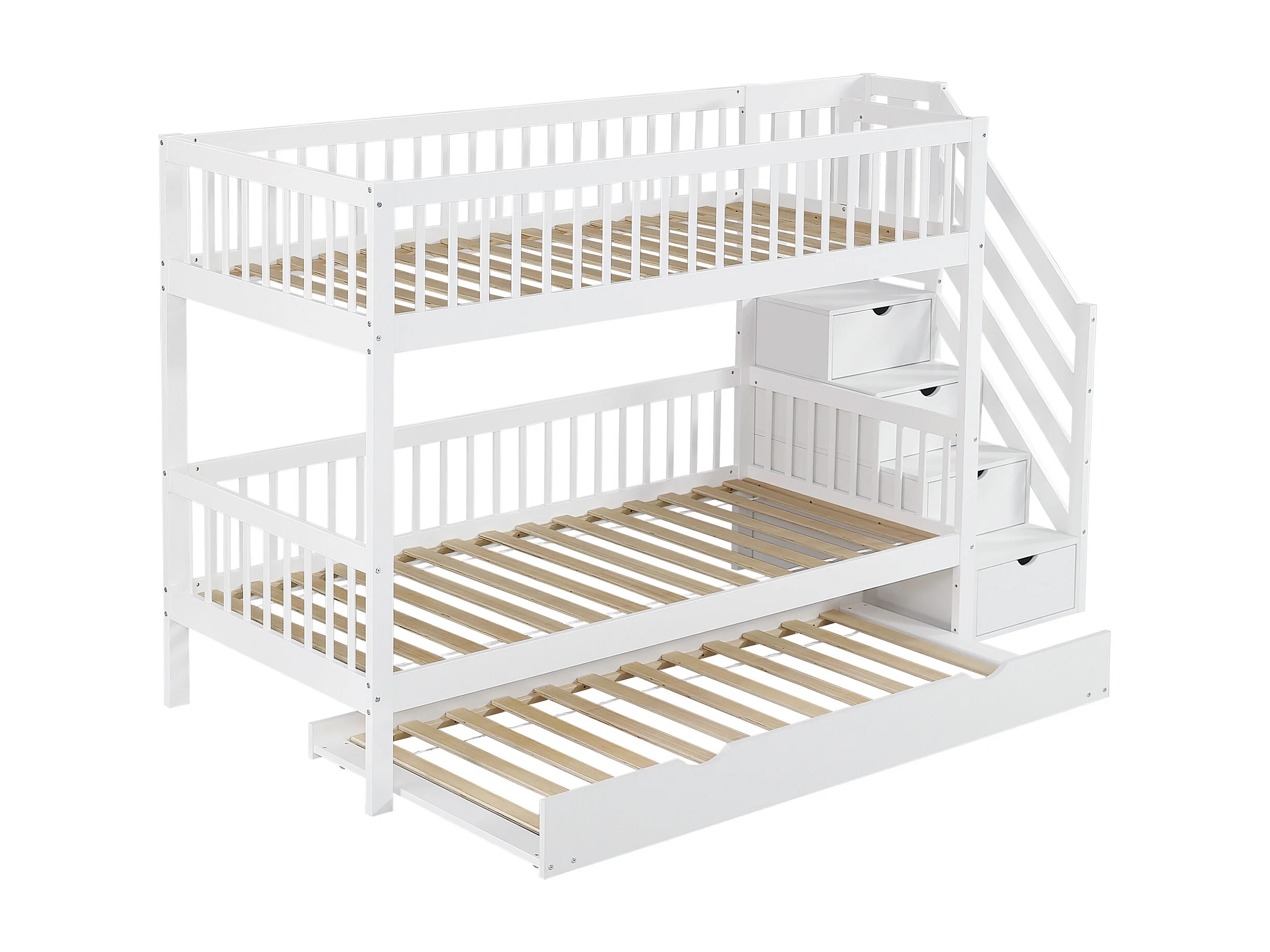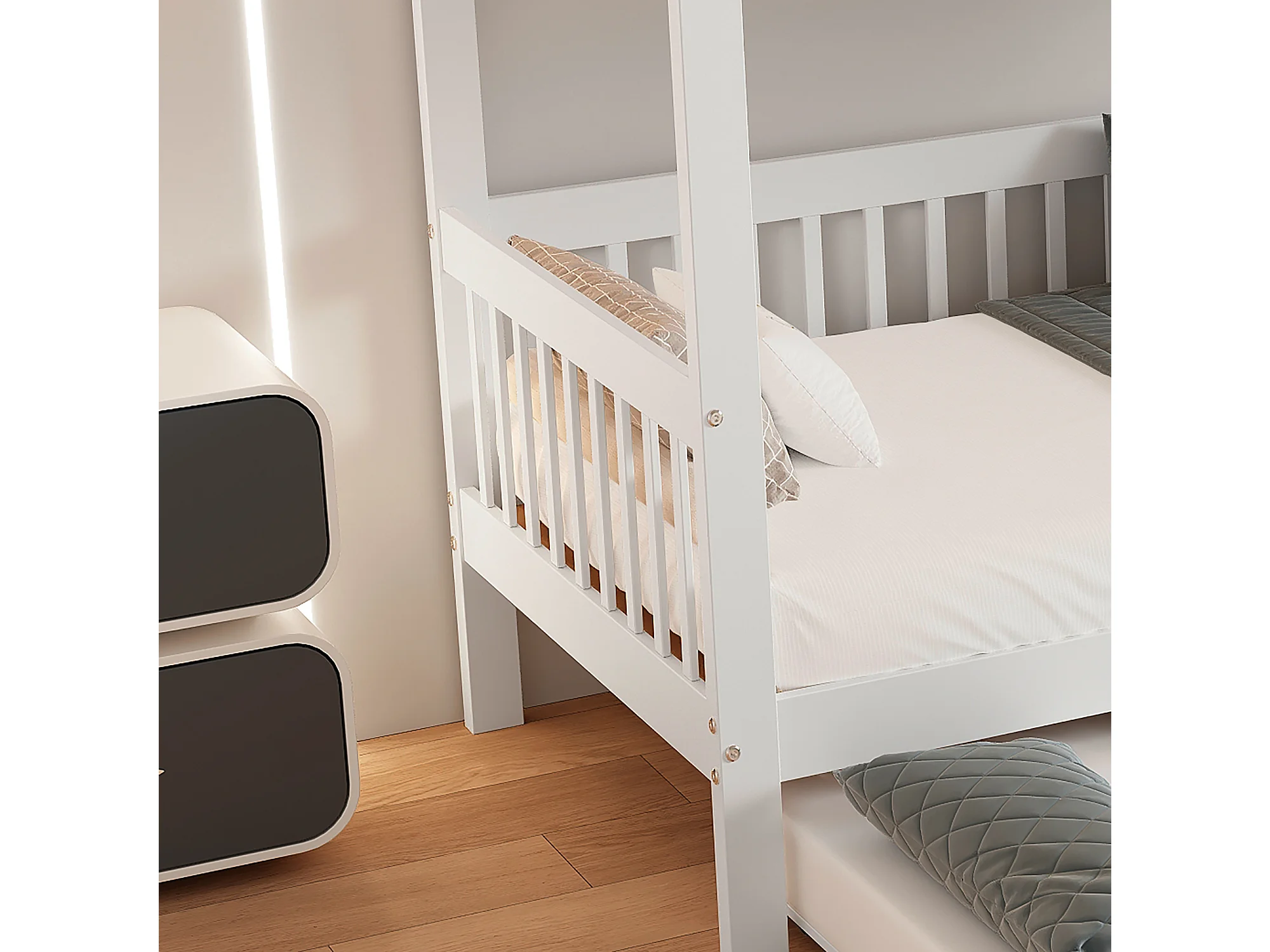 Lit superposé, 90 x 200/190 cm, avec protection anti-chute et sommier à lattes, blanc