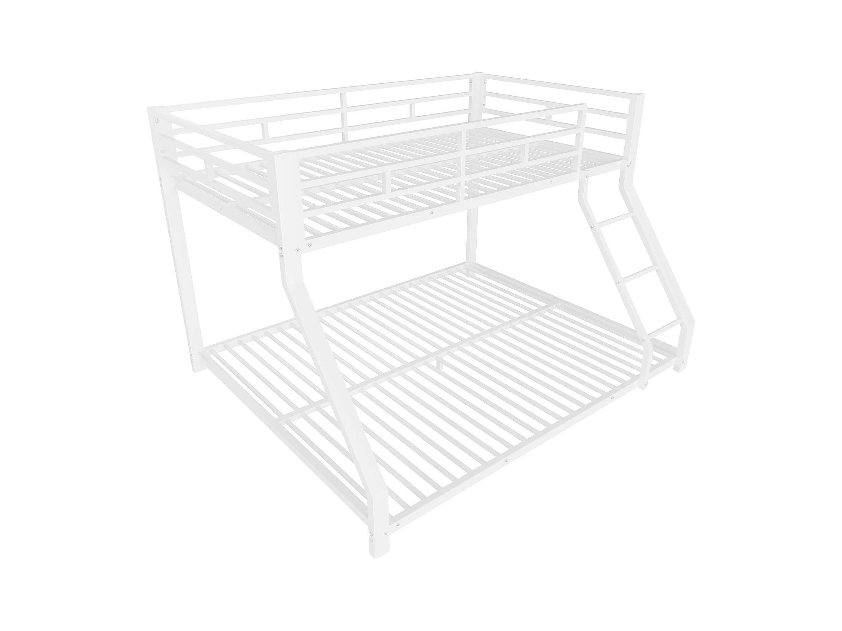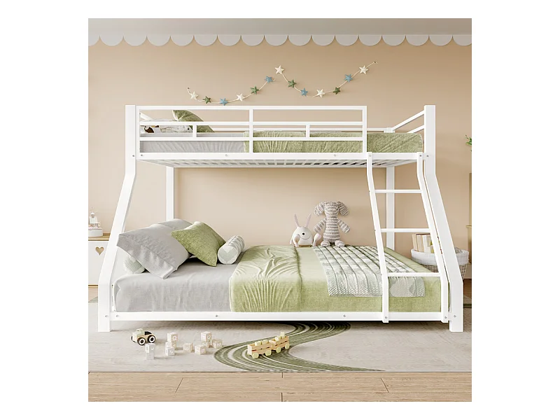 Lit superposé 90x200 + 140x200 cm - avec barrières - avec échelle de sécurité - métal - blanc (sans matelas)