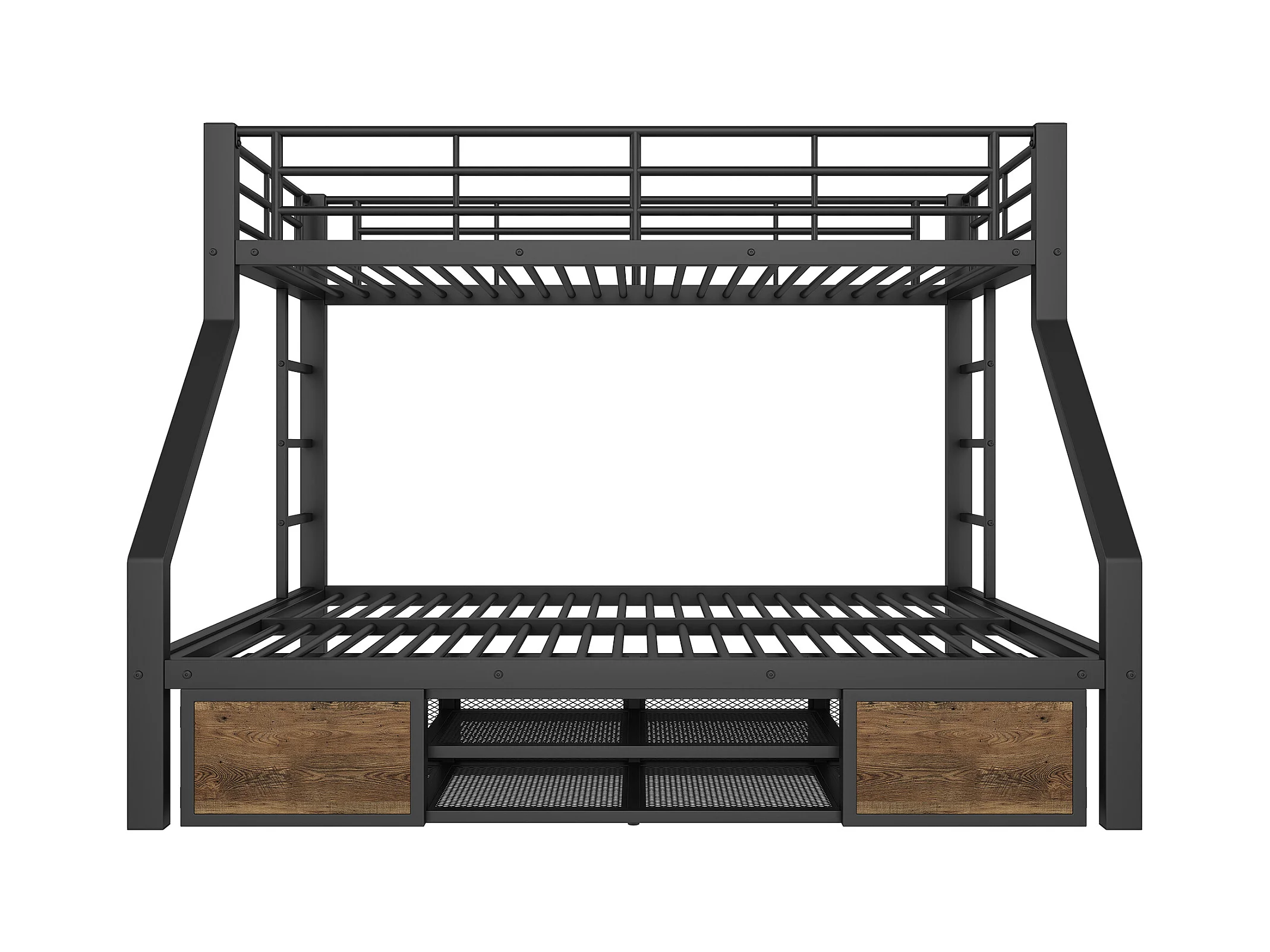 Lit superposé 90x200 cm + 140x200 cm - avec étagère à chaussures - compartiments de rangement - barrières de sécurité et échelle - noir