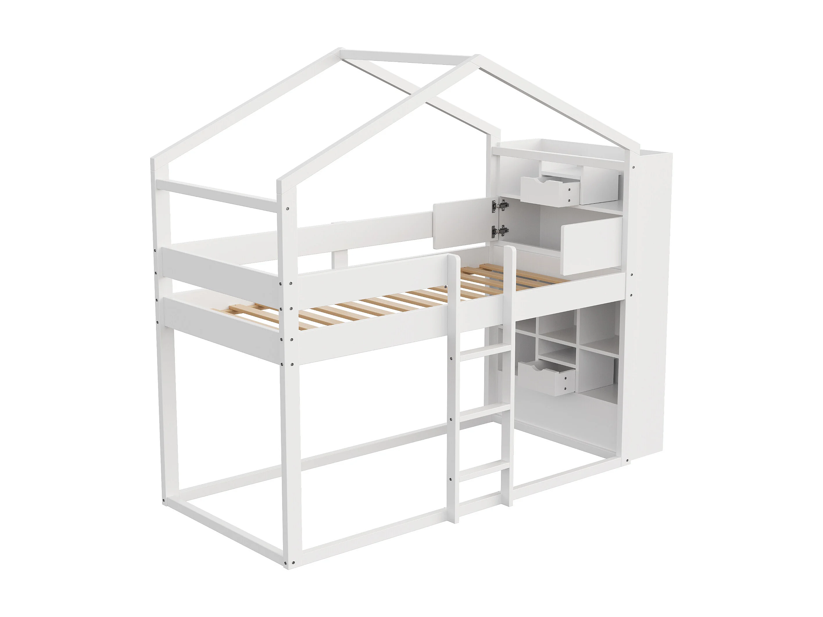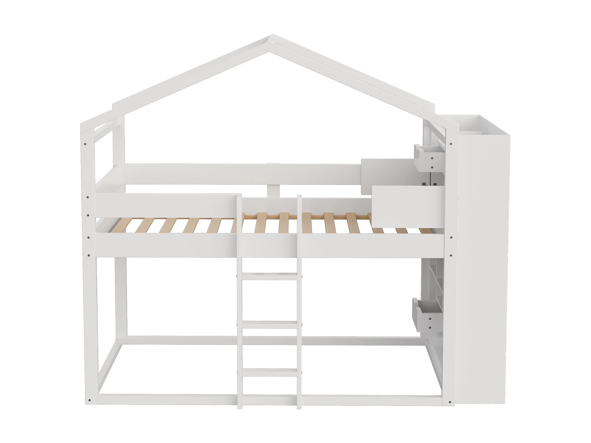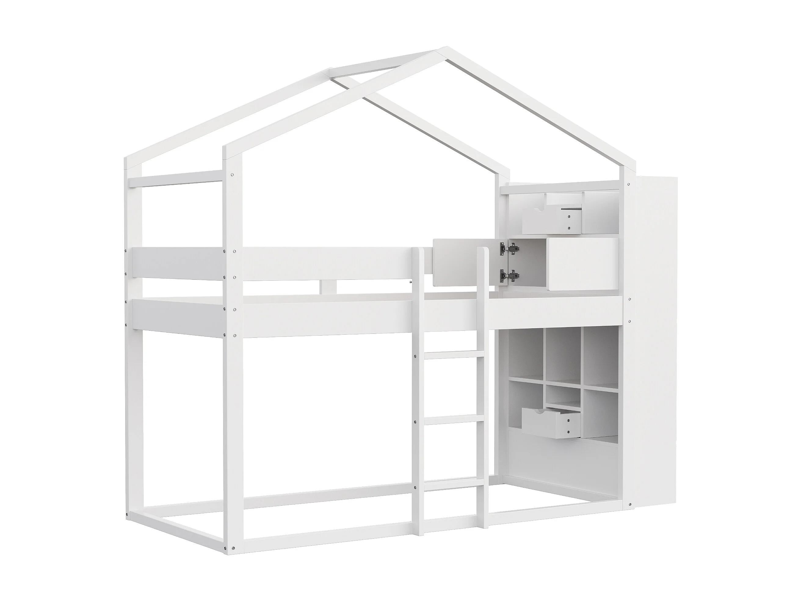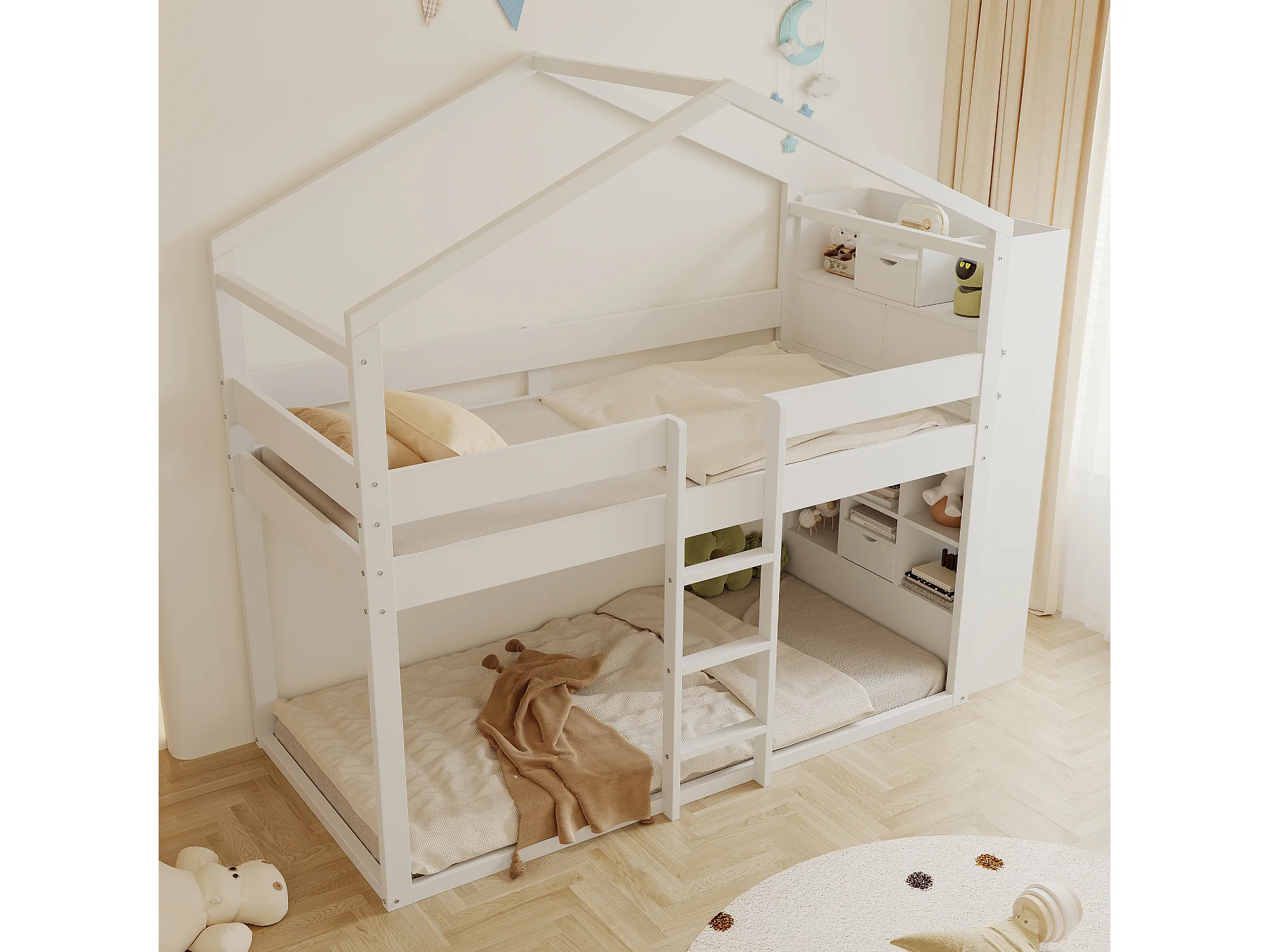 Lit superposé 90x200 cm - avec compartiments de rangement - avec 2 petits tiroirs - blanc (matelas non inclus)