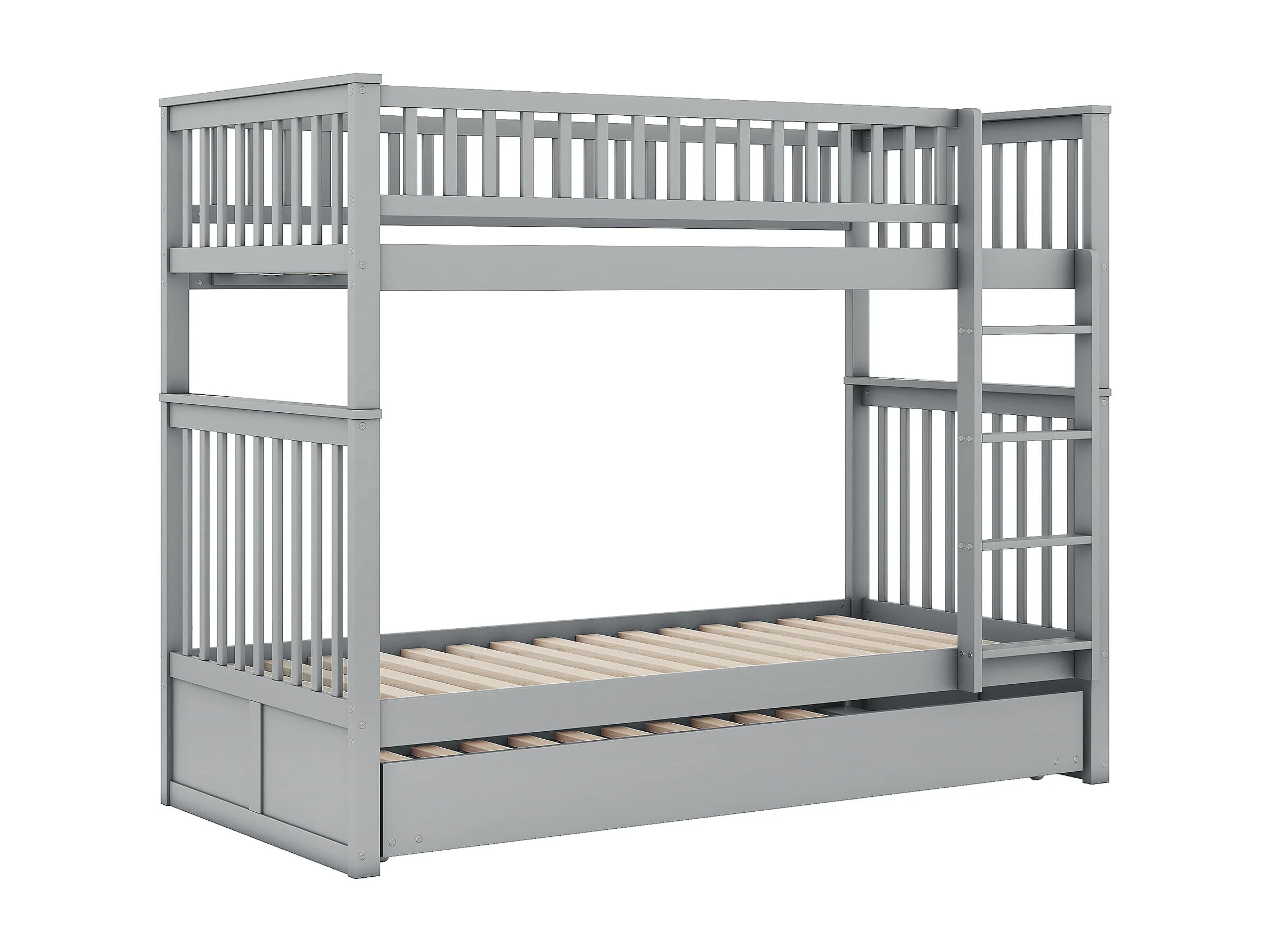lit superposé 90x200 cm - avec lit gigogne - barrières de sécurité hautes - gris
