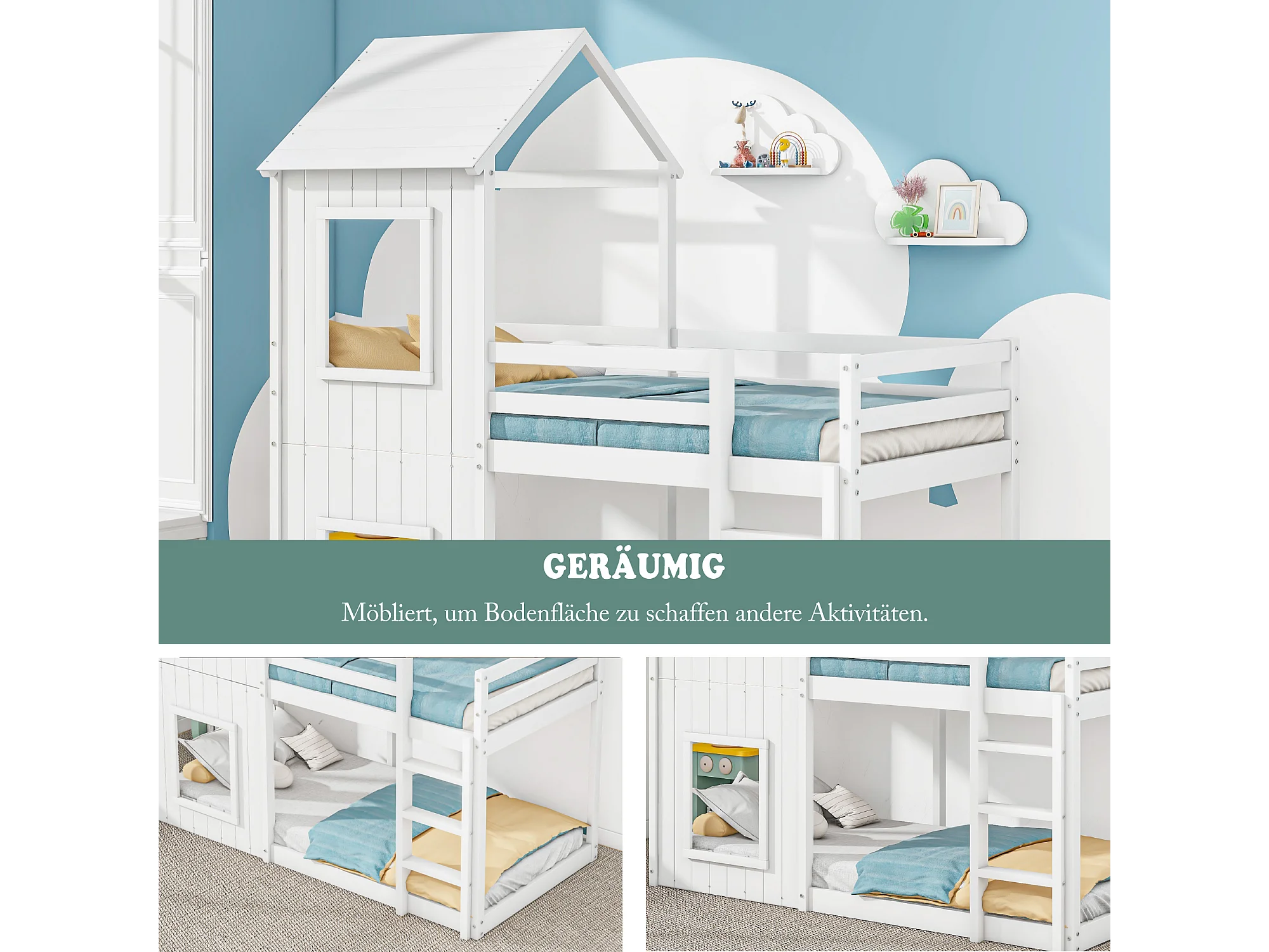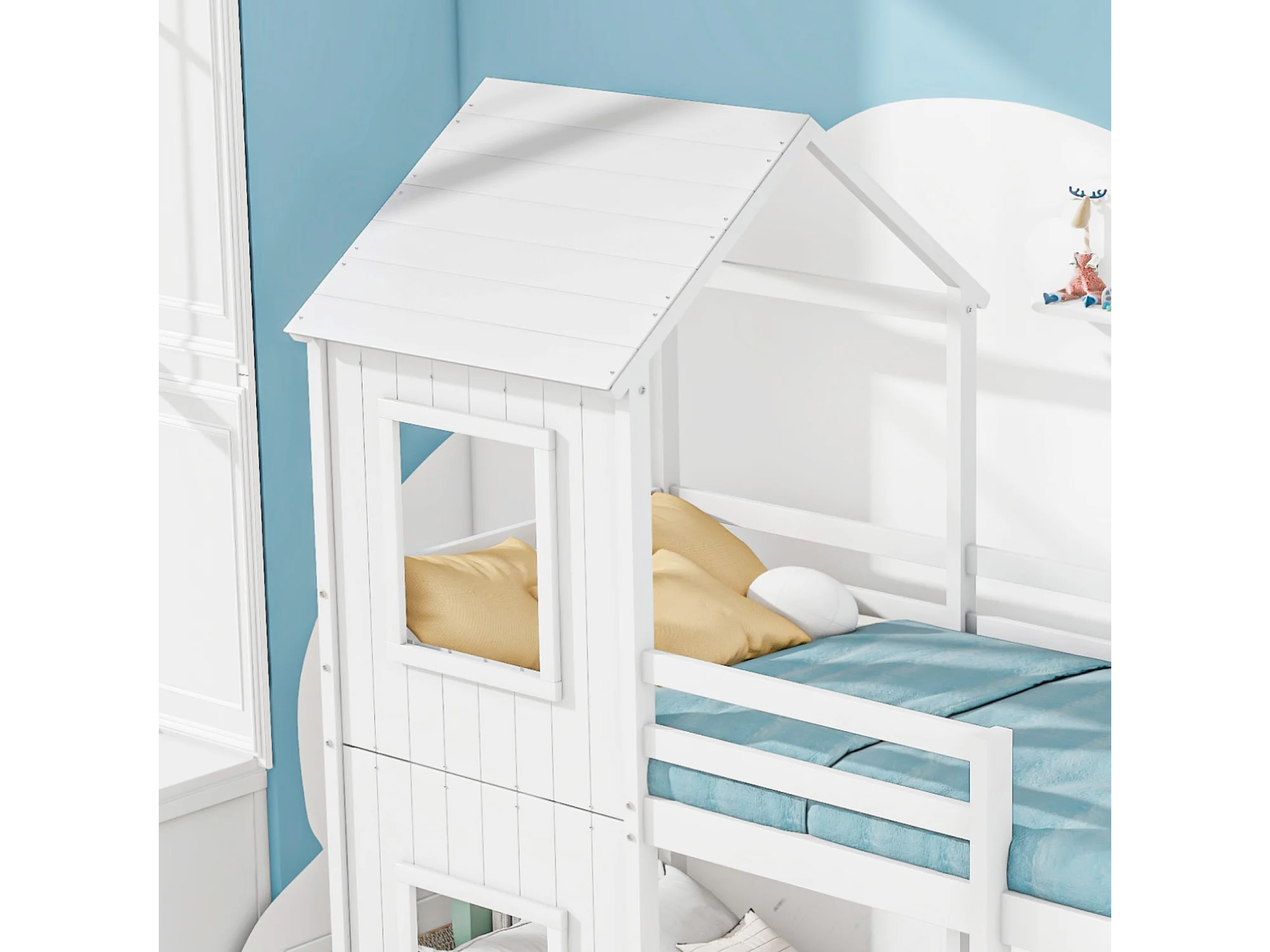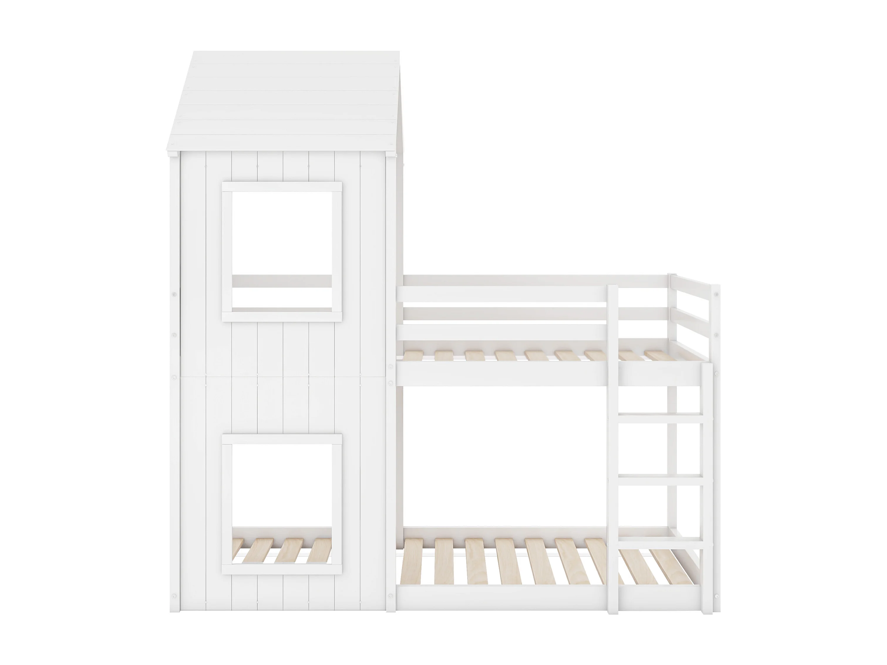 Lit enfants 90 x 200 cm - Lit Cabane En Pin Massif;MDF Avec Barrière De Sécurité Et Espace De Jeu Intégré - Sans Matelas - Blanc