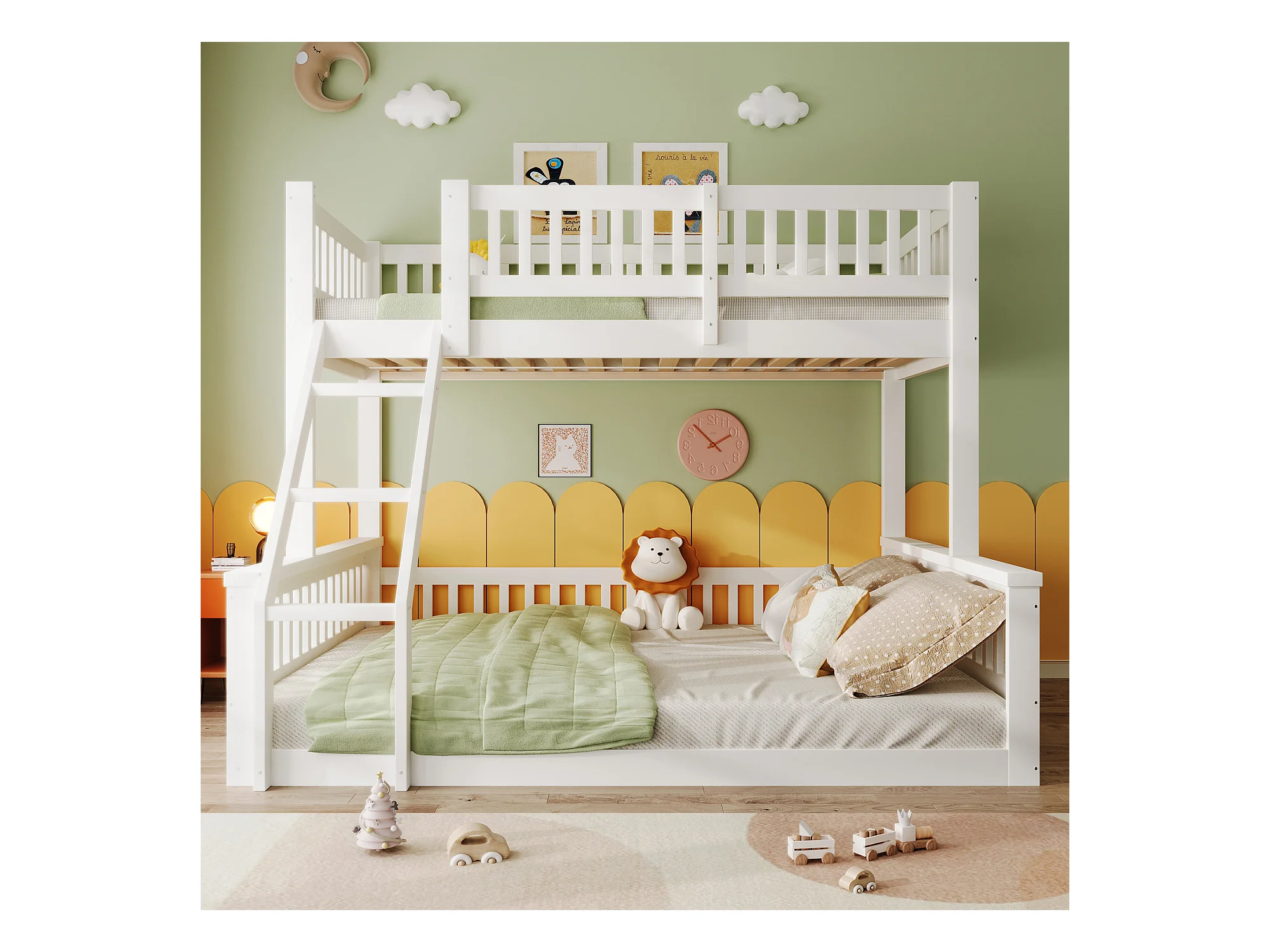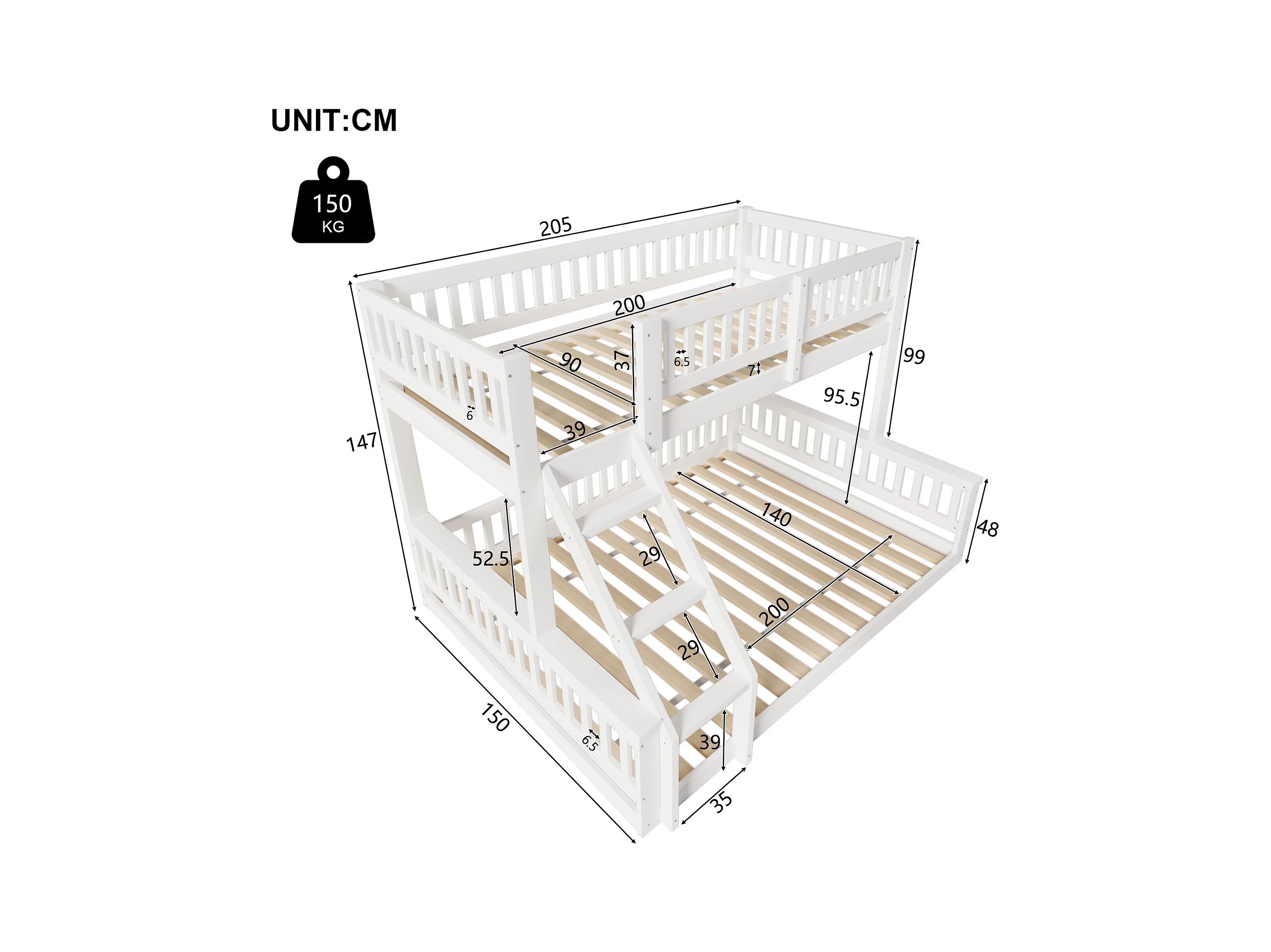 Lit superposé 90x200cm + 140x200cm - avec échelle - avec garde-corps - blanc (matelas non inclus)