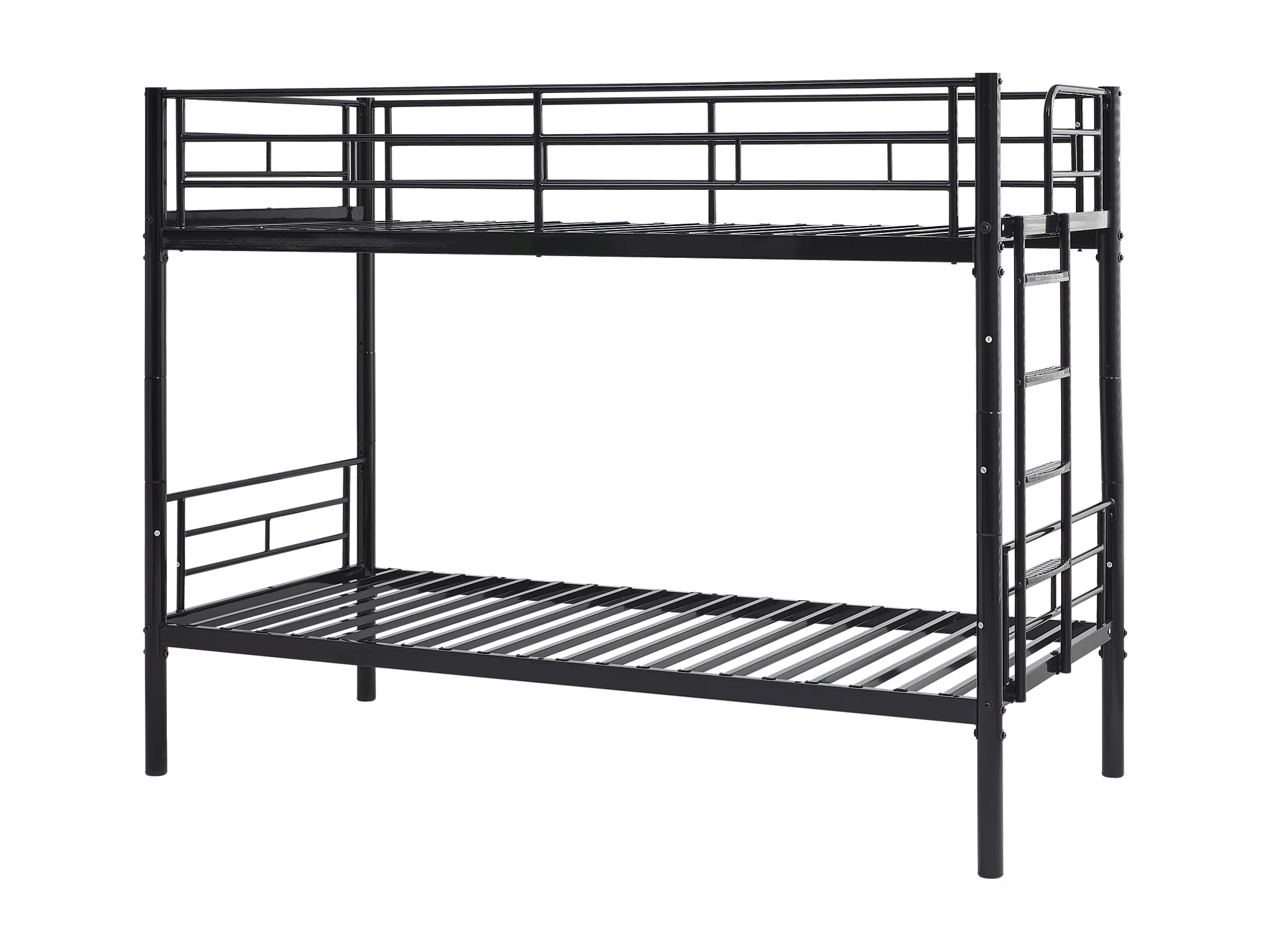 Lit superposé 90x200cm - avec des rambardes de sécurité et des escaliers - métal noir