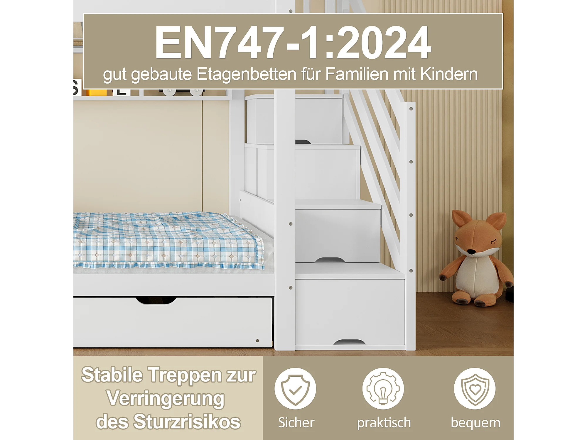 Lit Superposé 90x200cm, avec Lit Extensible, Armoire, Étagère, et Rangement, Pin, Blanc (254x95x165 cm)