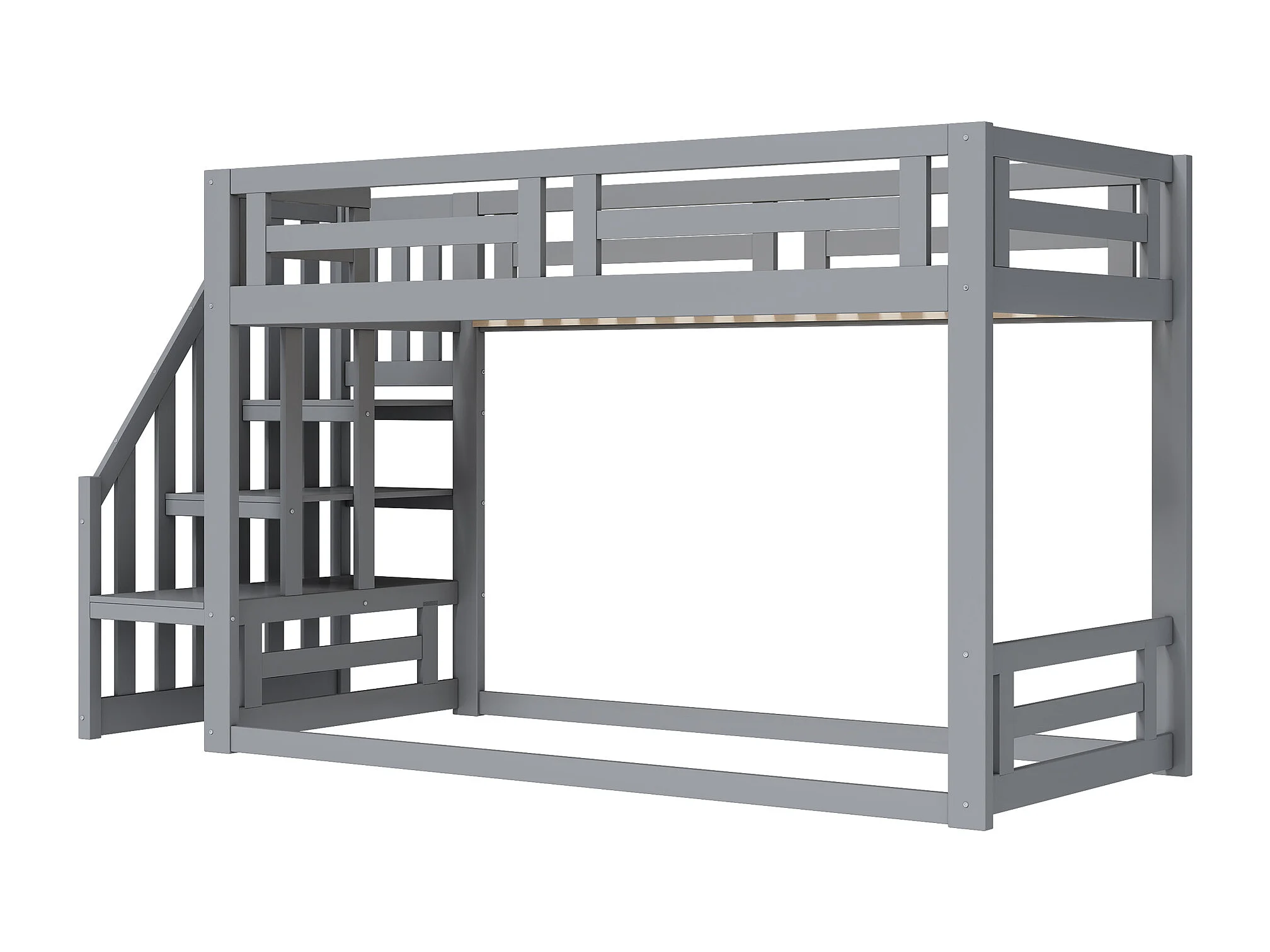 Lit superposé 90x200cm lit enfant moderne sécurité optimale bois chambre enfant gris (Sans matelas)