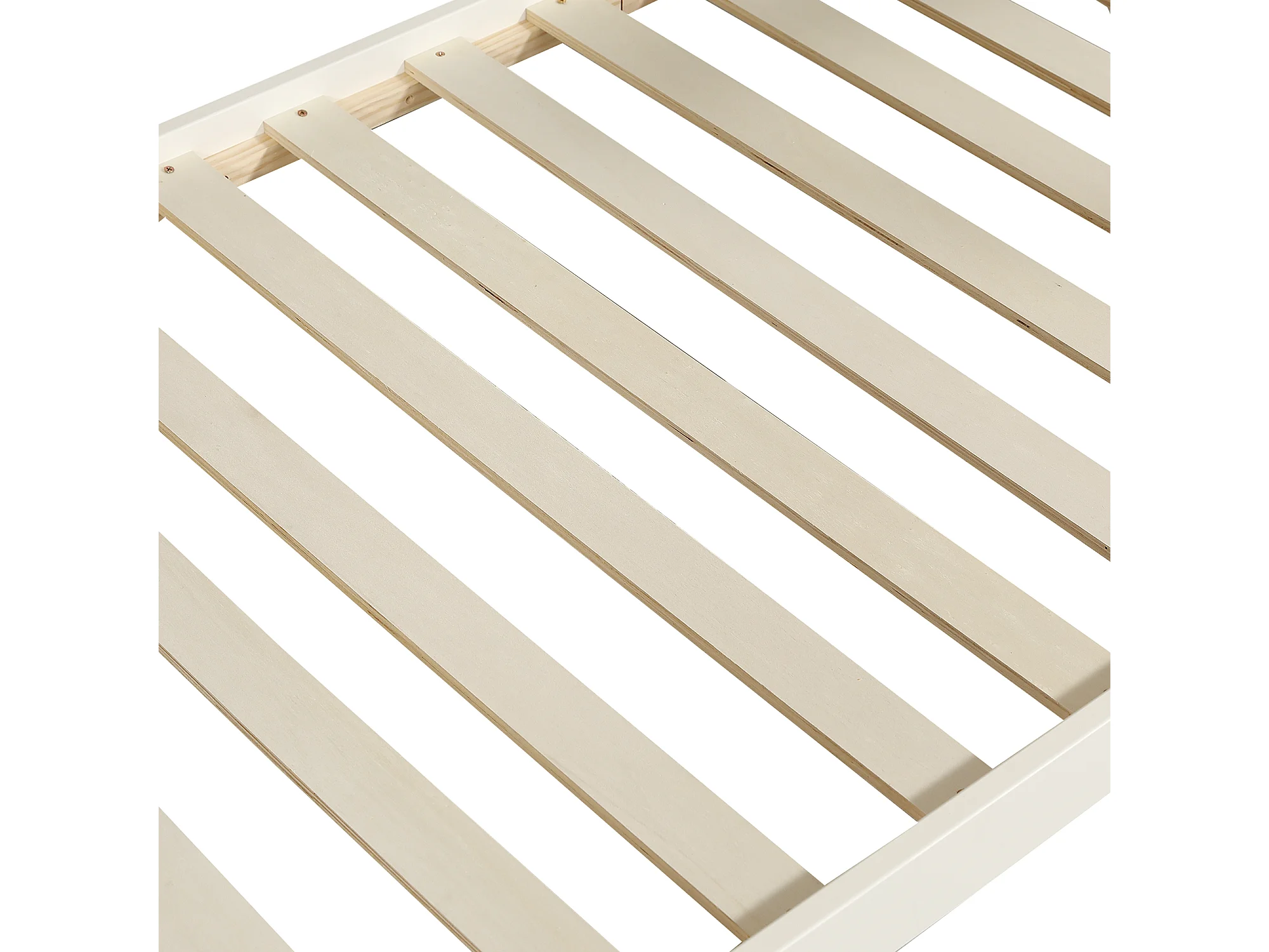 Lit superposé enfant 90x200 cm avec escalier, barrière de sécurité, rideaux, toboggan, bois, blanc (Sans matelas)