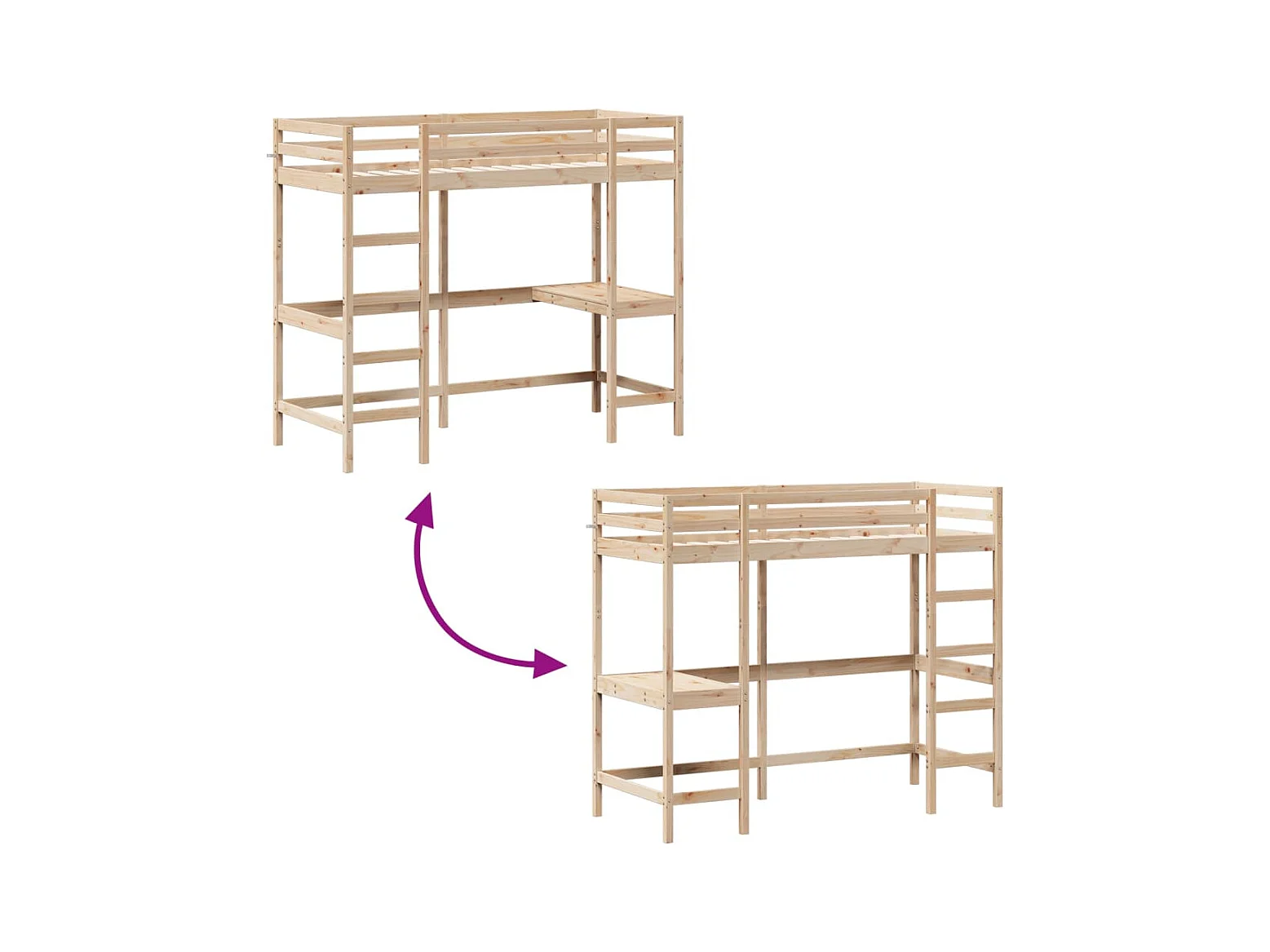Lit superposé avec bureau 80x200 cm bois de pin massif