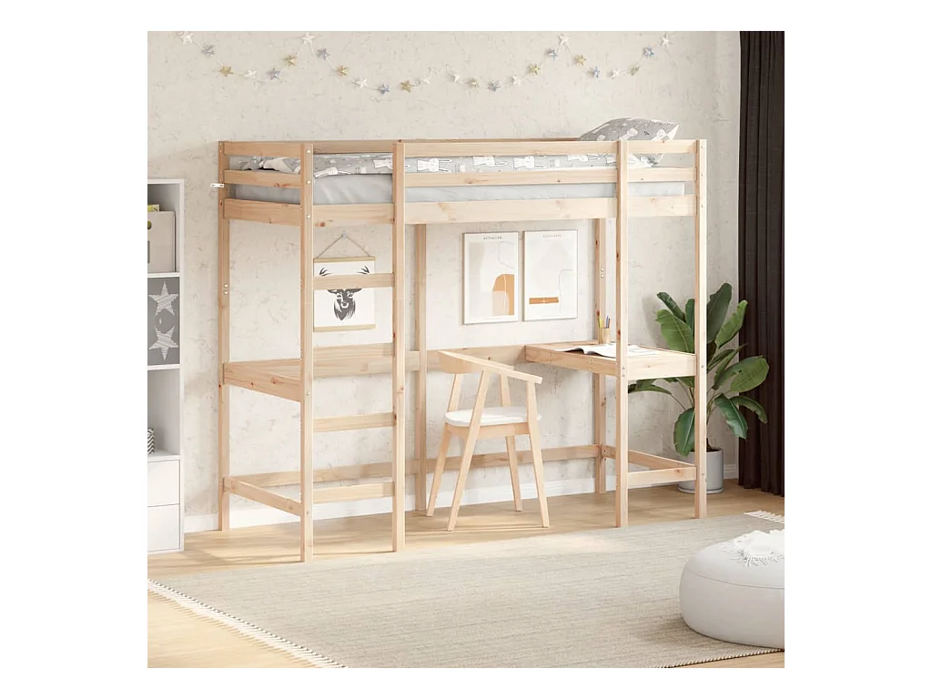 Lit mezzanine avec bureau 80x200 cm bois de pin massif HOQW94974