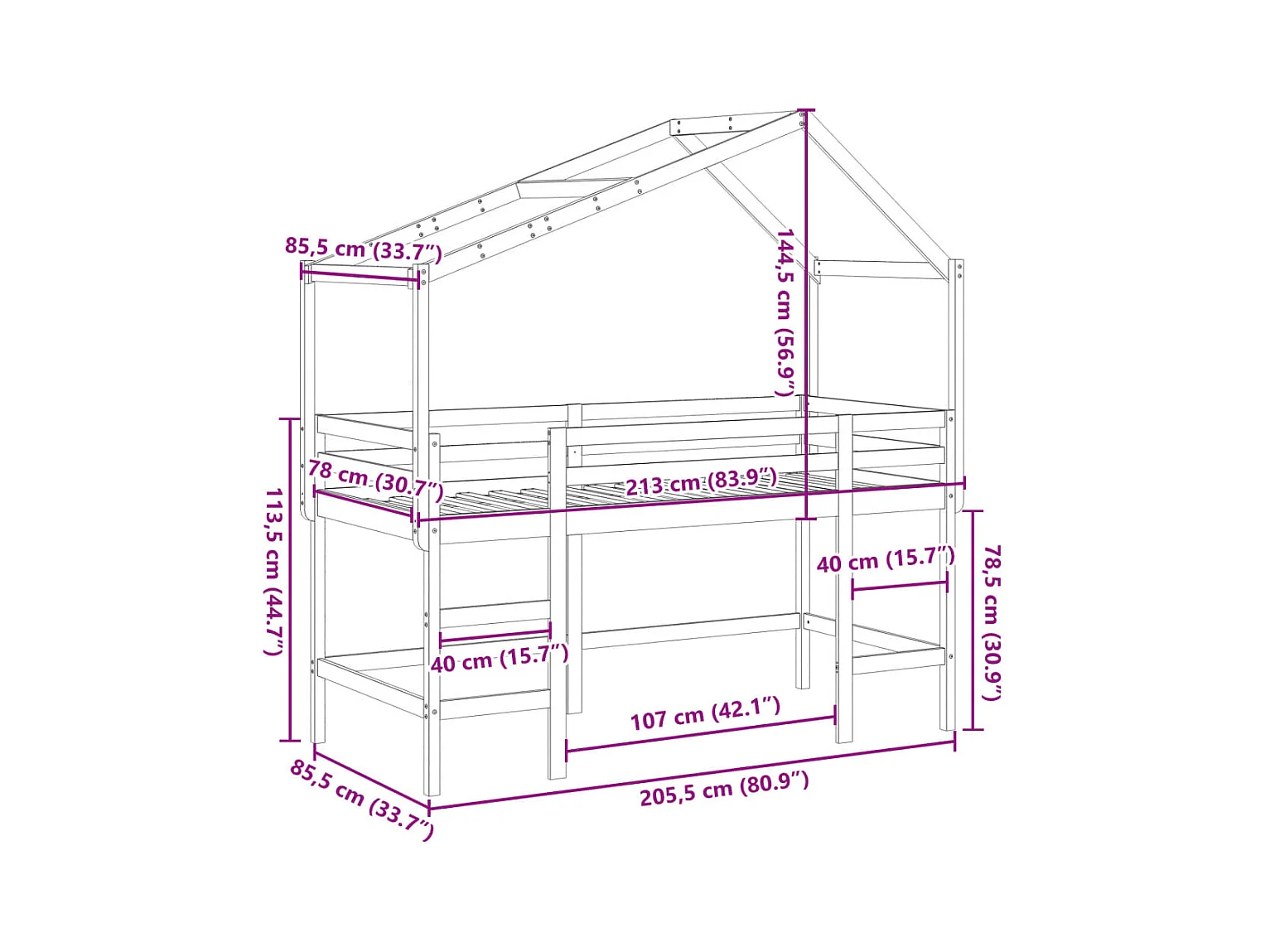 Lit superposé avec toit 80x200 cm bois de pin massif FR76561