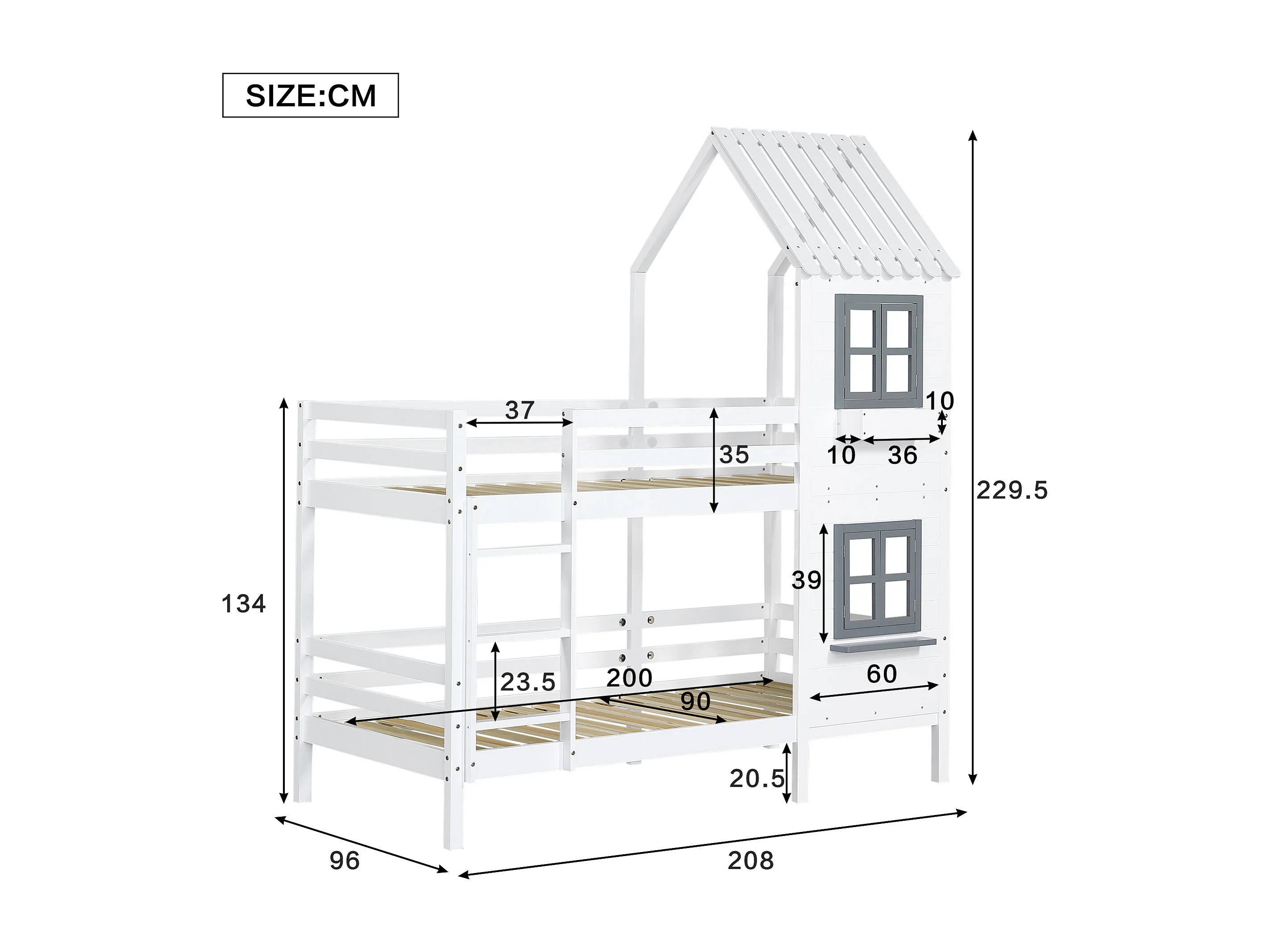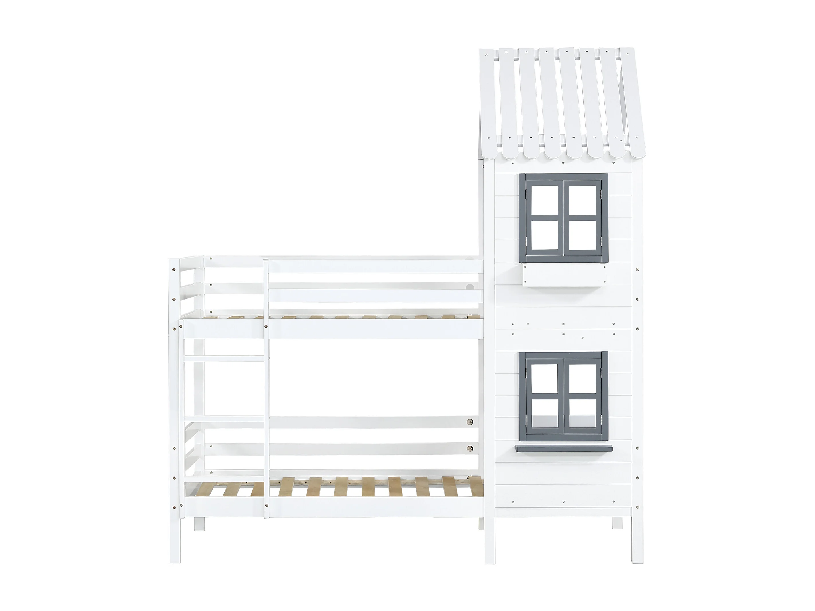 Lit superposé 90x200 cm pour enfant, design maison, garde-corps élevé, sommier à lattes, idéal garçons et filles, couleur blanche