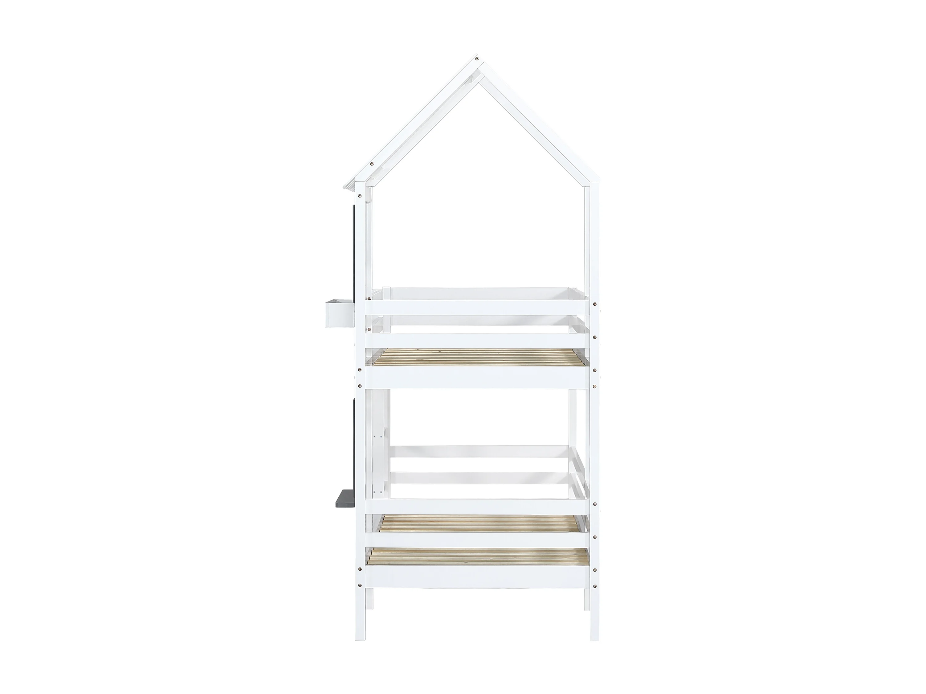 Lit superposé 90x200 cm pour enfant, design maison avec garde-corps élevé, sommier à lattes – Idéal garçons et filles, Blanc