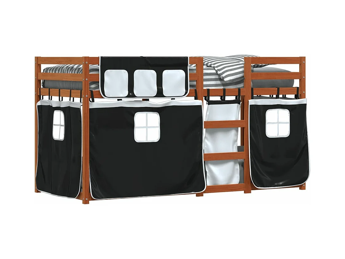 Lit superposé avec rideaux blanc/noir 80x200 cm bois pin massif FR42676