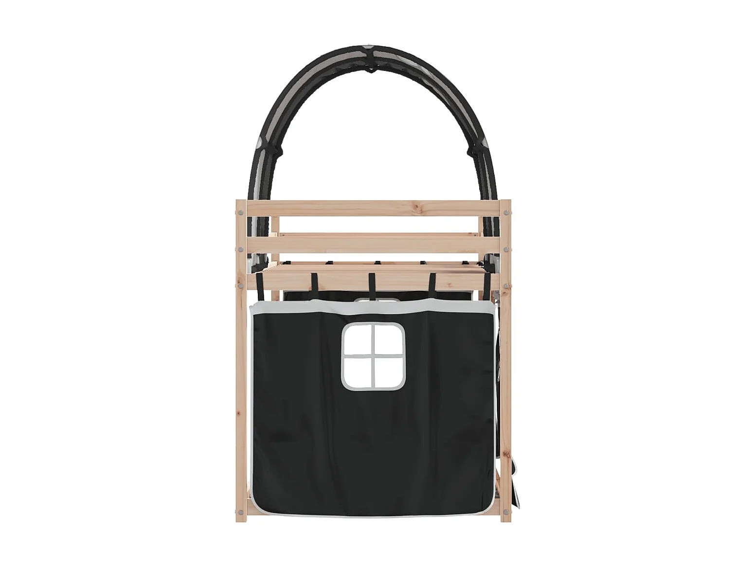 Lit superposé avec rideaux blanc/noir 90x190 cm bois pin massif