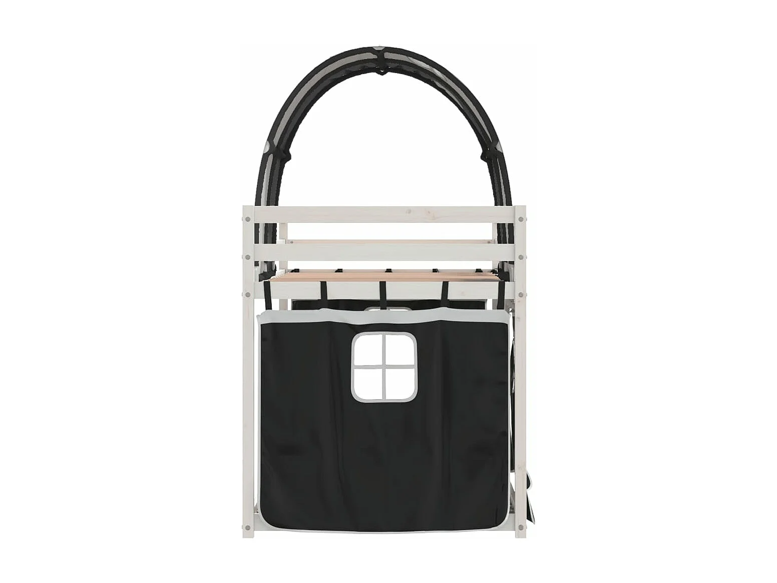 Lit superposé avec rideaux blanc/noir 90x200 cm bois pin massif