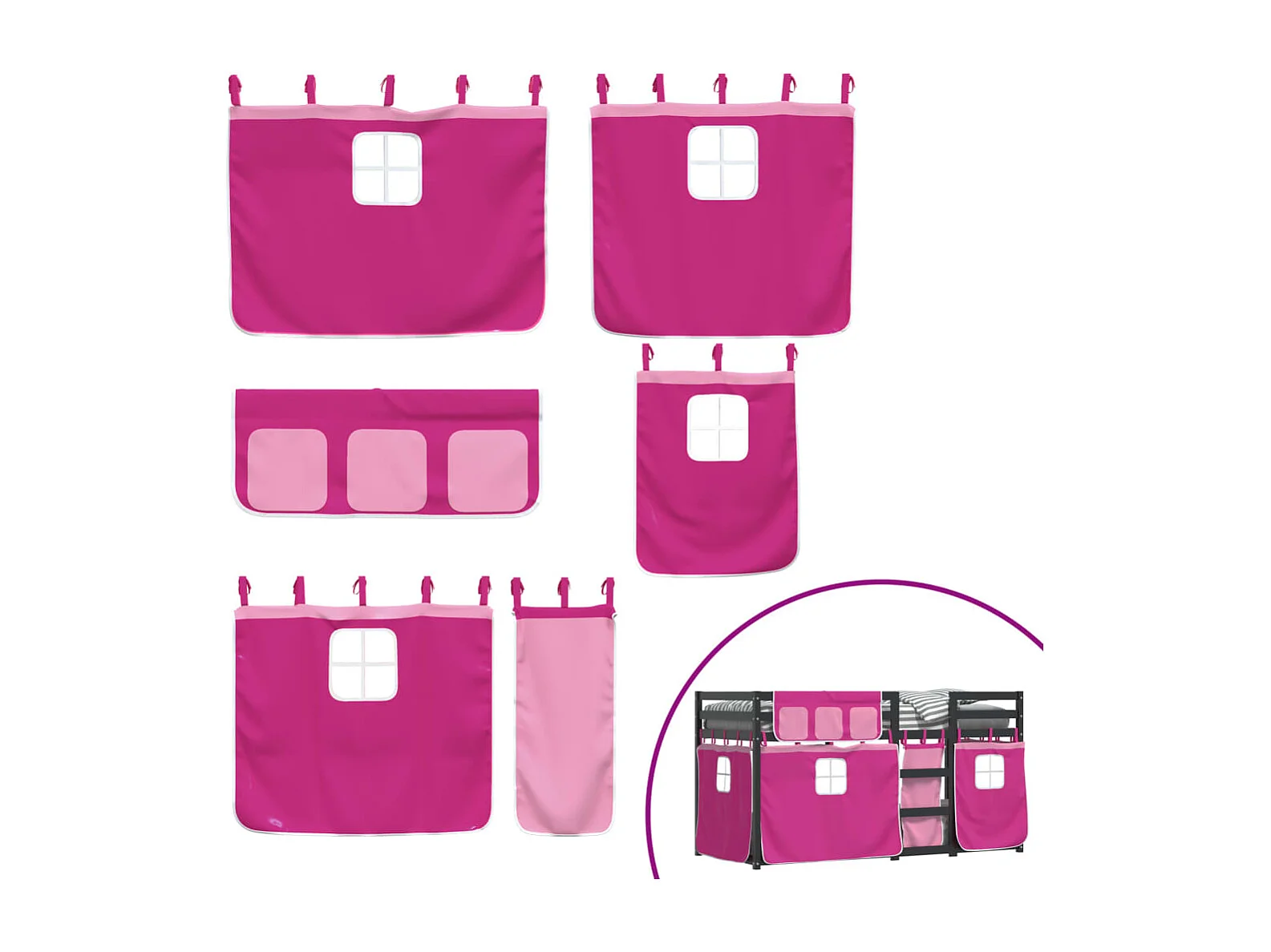 Lit superposé avec rideaux rose 90x200 bois pin massif