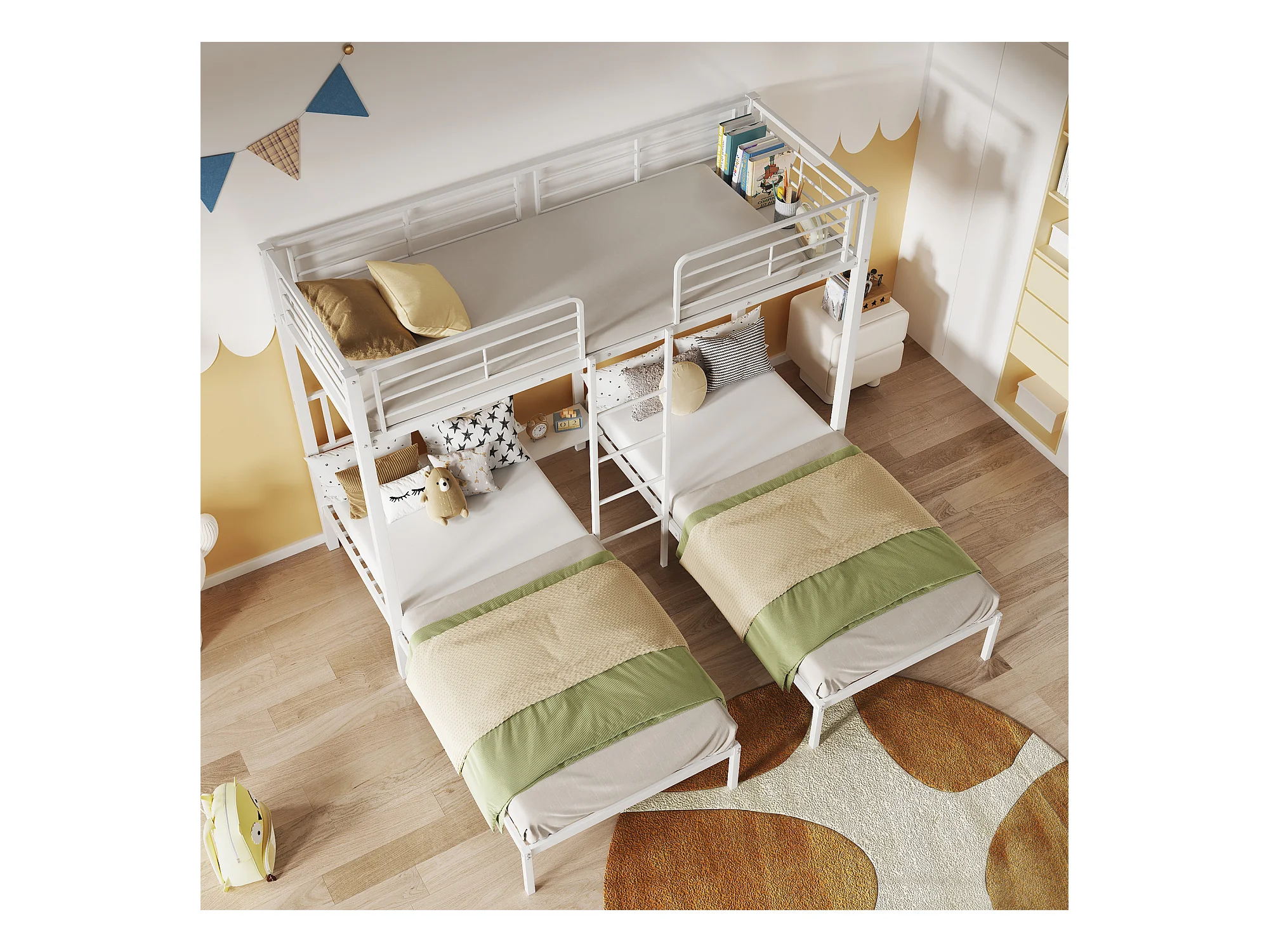 Lit superposé avec table de chevet - 3 x 90 x 200 cm - métal - coloris: blanc