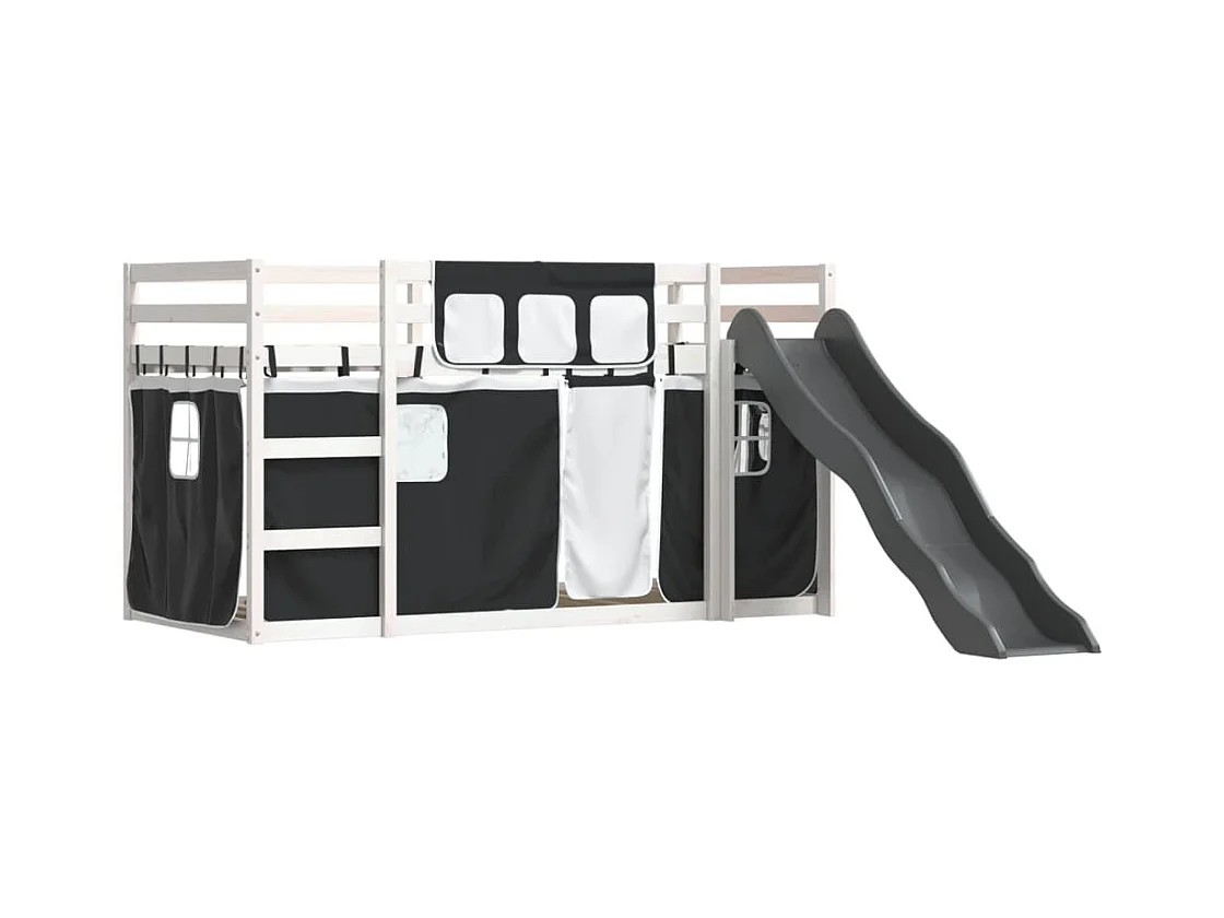 Lit superposé avec toboggan et rideaux blanc et noir 80x200 cm FR59696