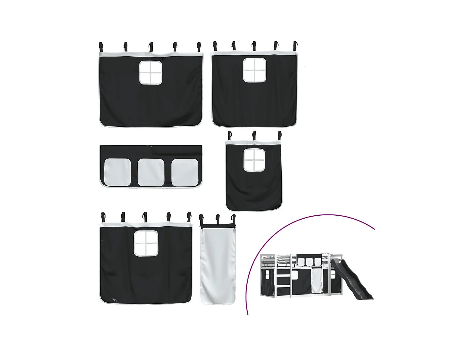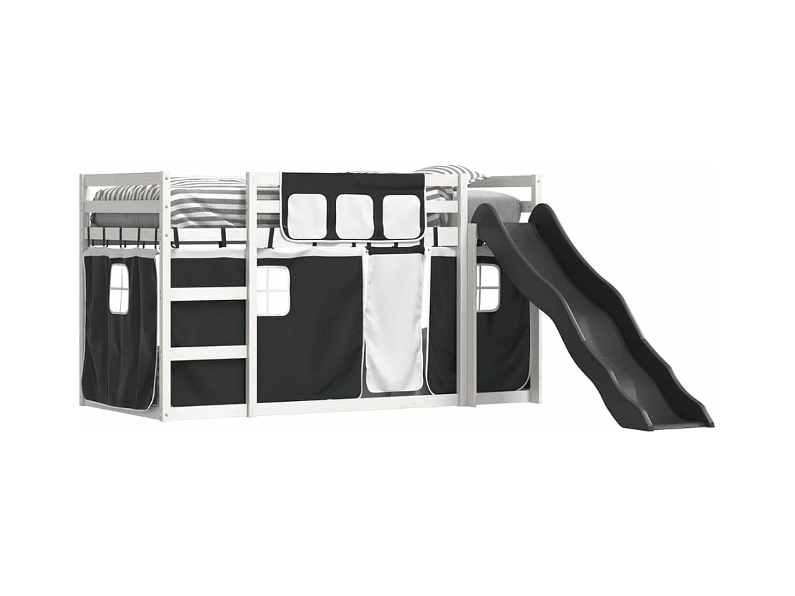 Lit superposé avec toboggan et rideaux blanc et noir 80x200 cm FR35649