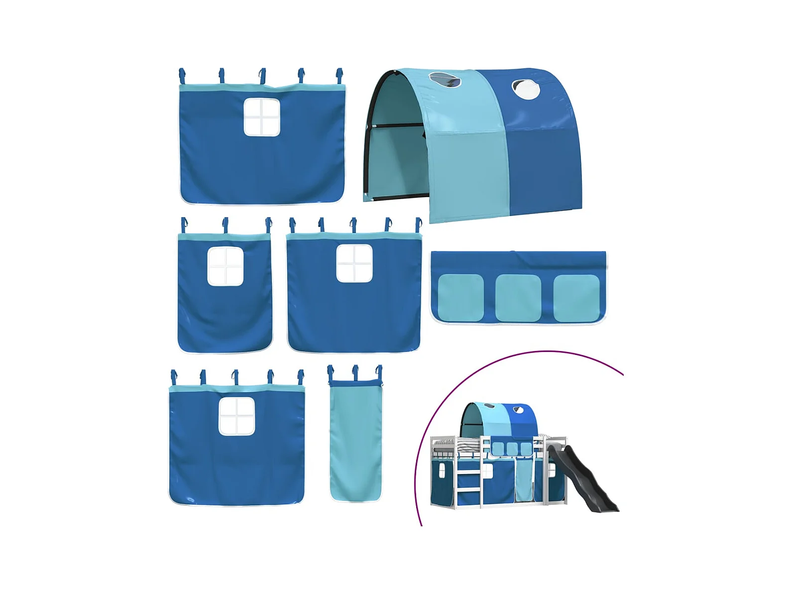 Lit superposé avec toboggan et rideaux bleu 90x200 cm FR25846