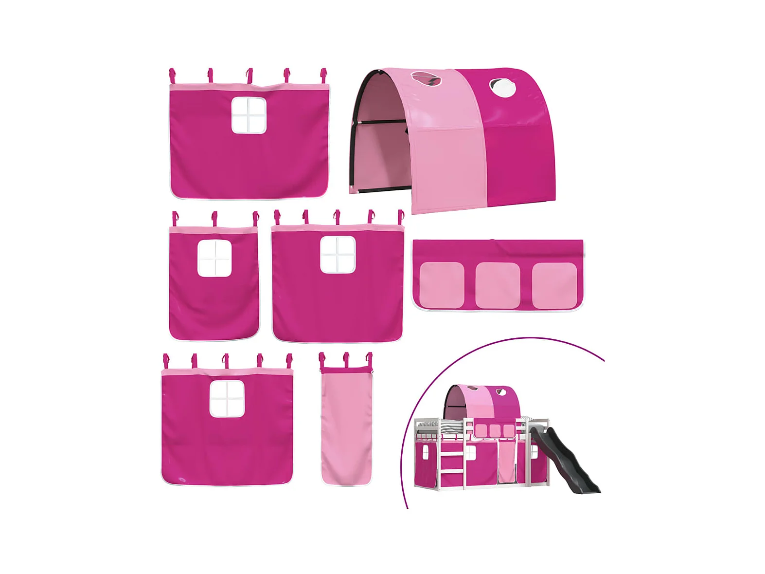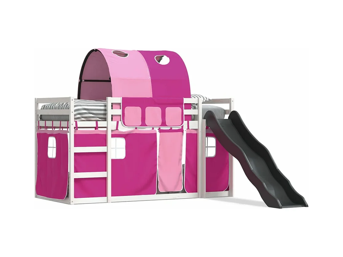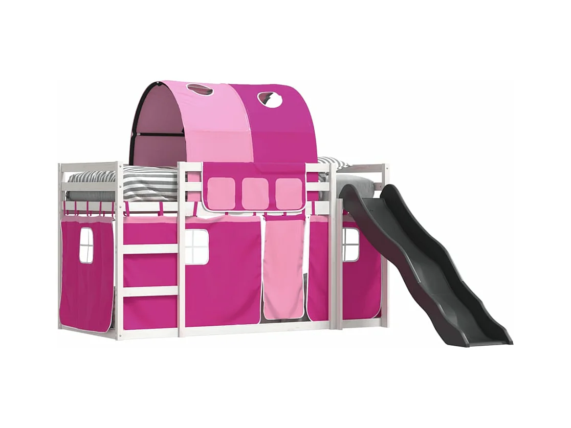 Lit superposé avec toboggan et rideaux rose 80x200 cm FR71840