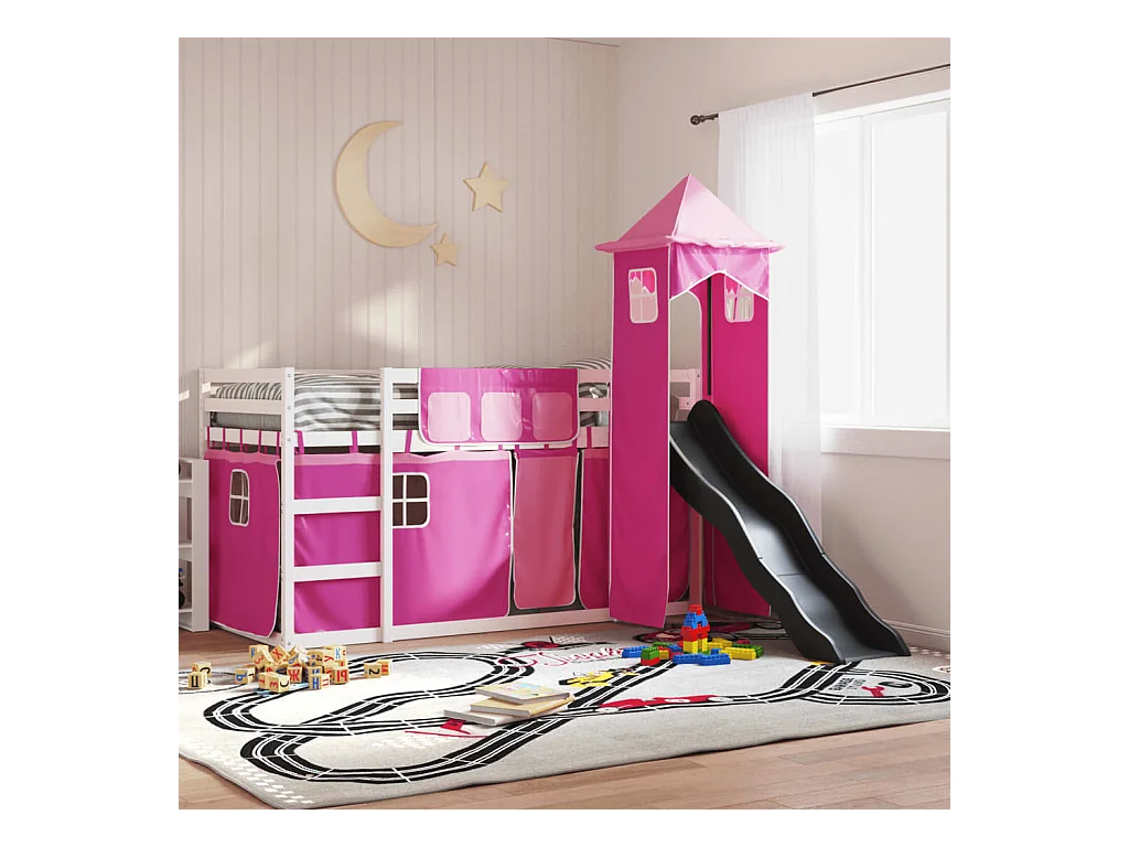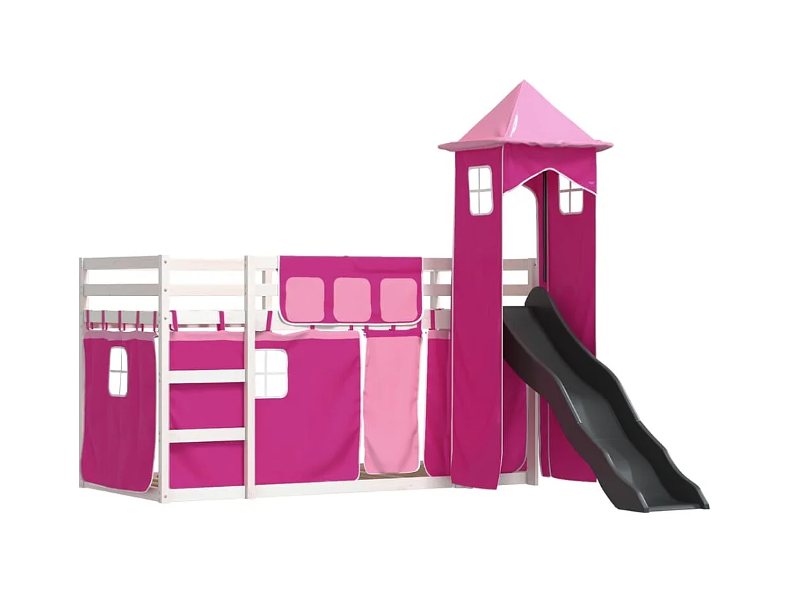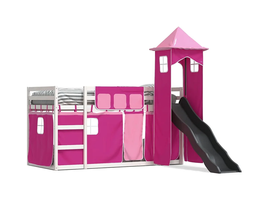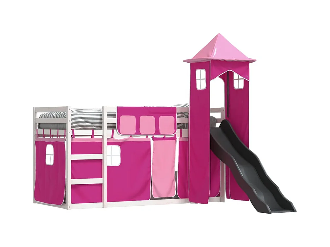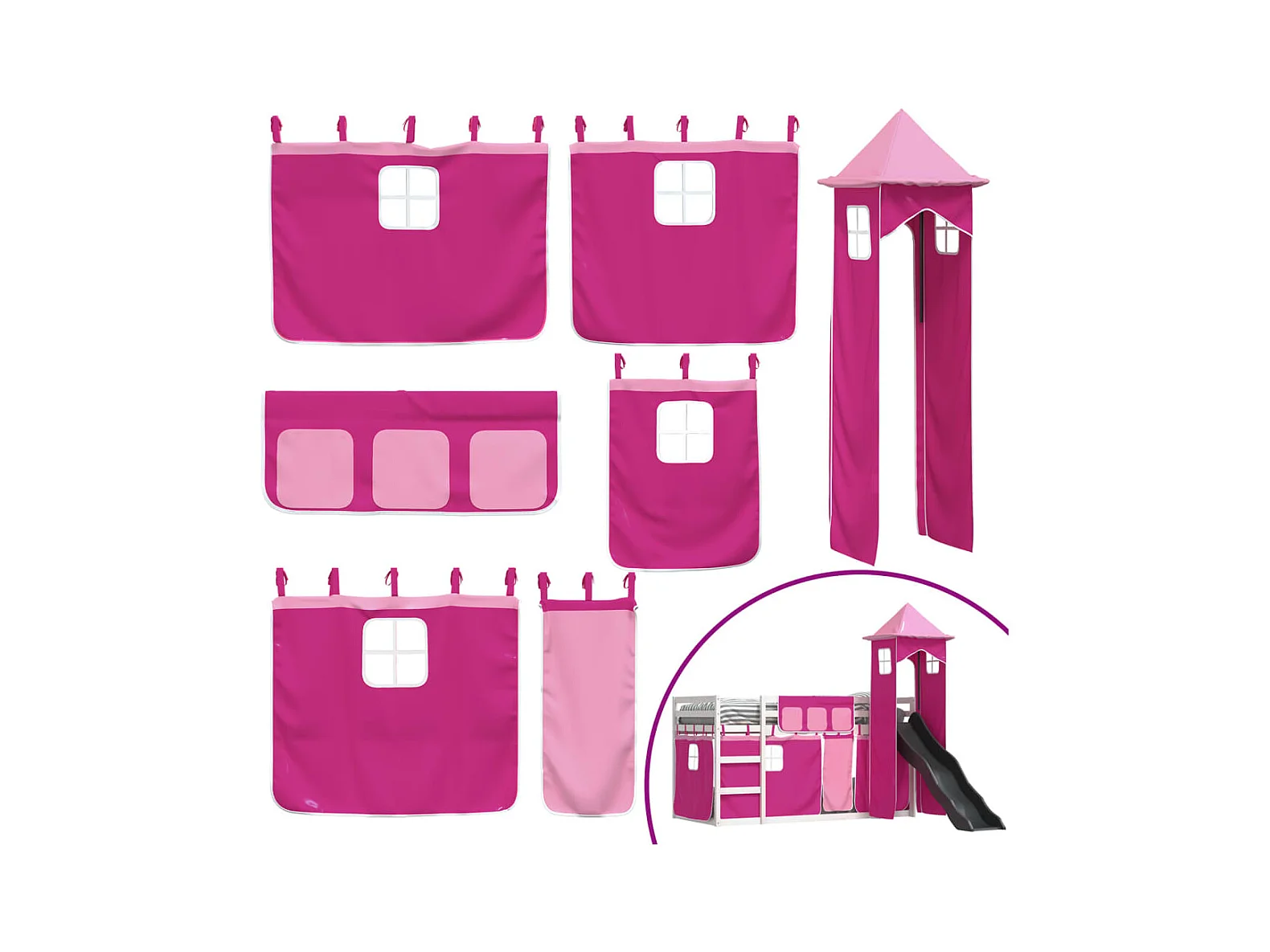 Lit superposé avec toboggan et rideaux rose 80x200 cm FR44766