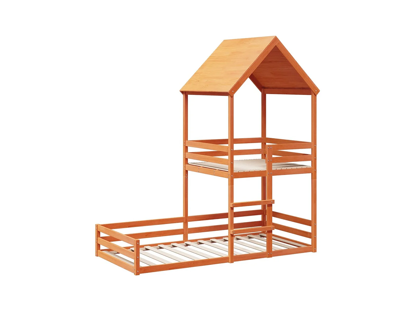 Lit superposé avec toit cire marron 90x190cm bois massif de pin FR89299