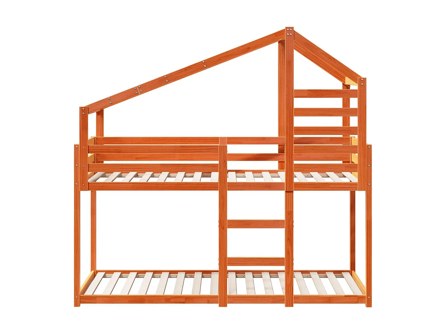 Lit superposé avec toit cire marron 90x200cm bois de pin massif