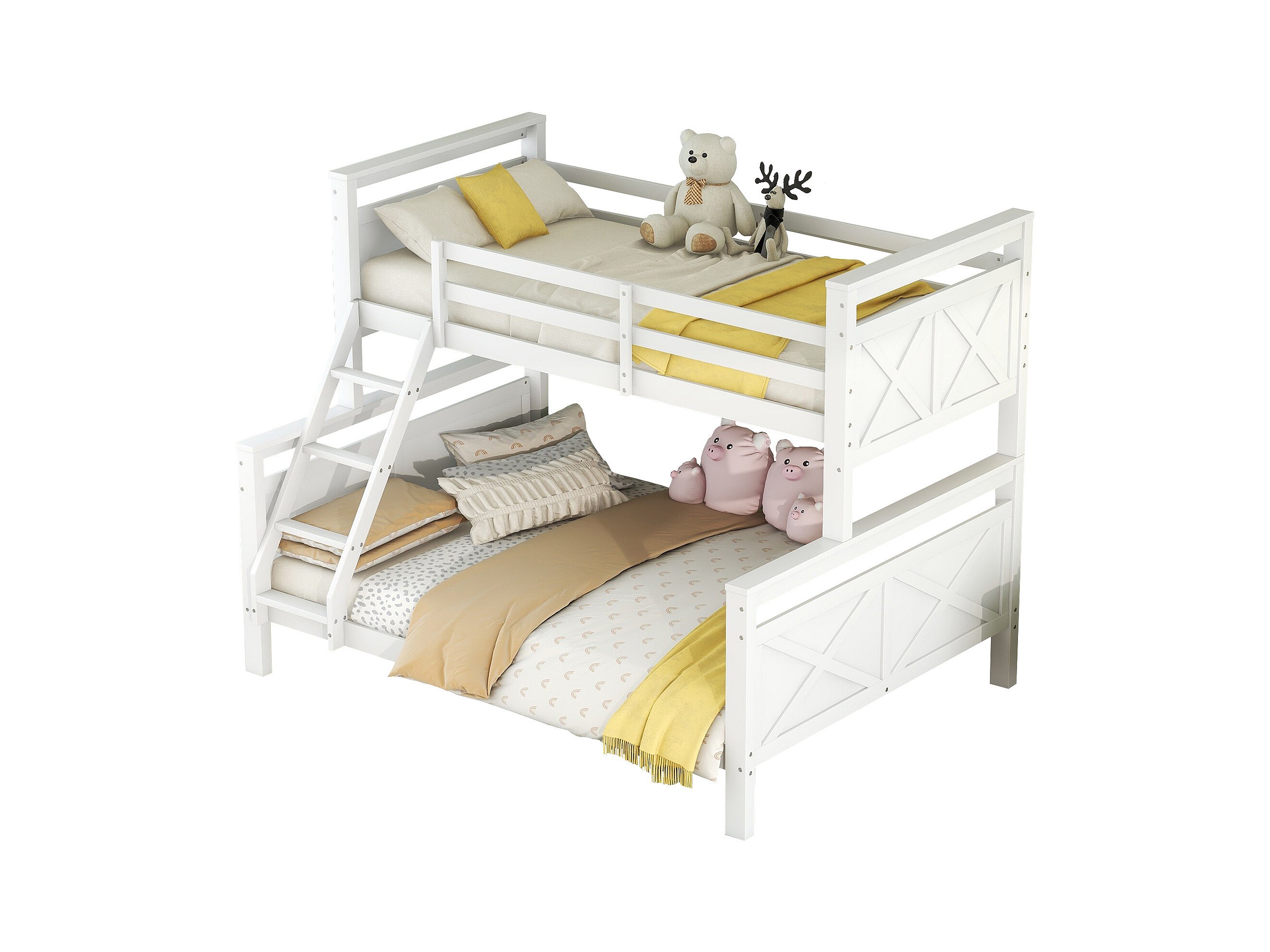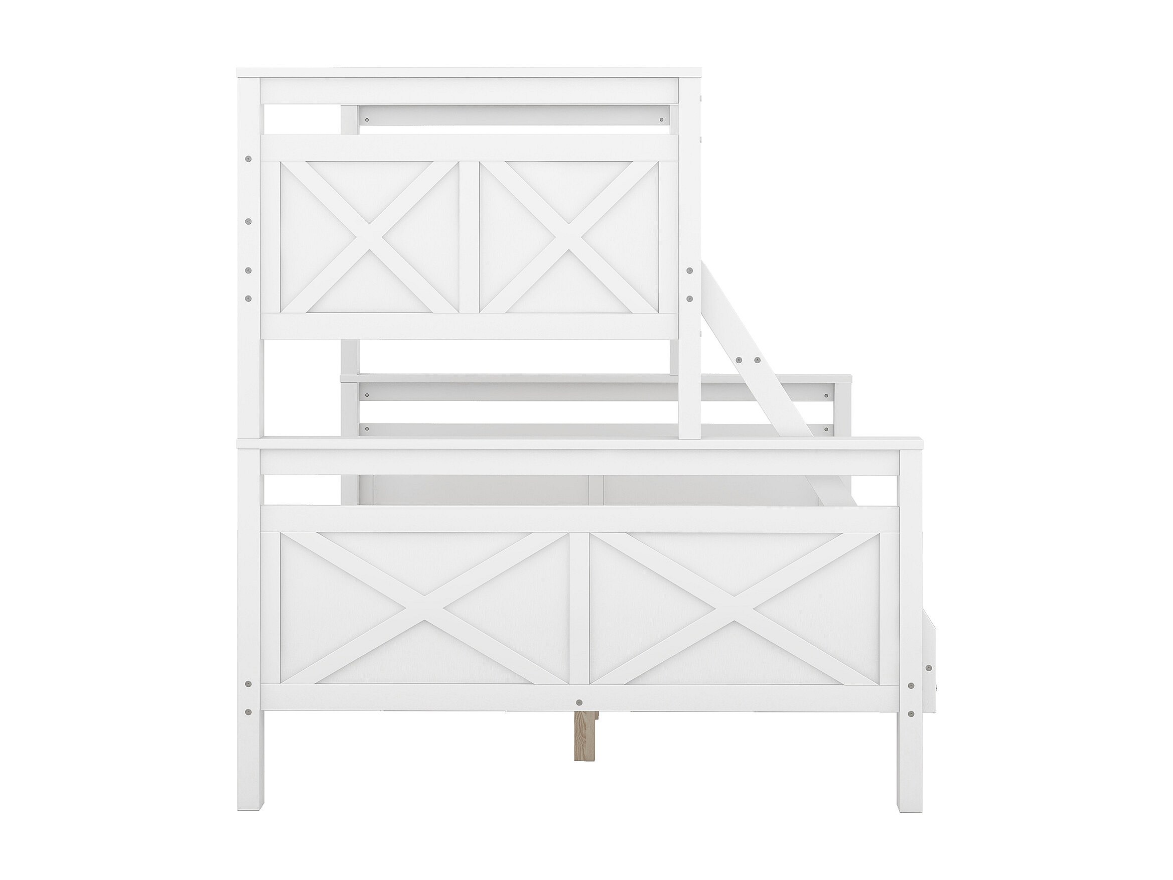 Lit superposé blanc 90(140)x200cm avec échelle et barrières de sécurité, transformable en 2 lits séparés (sans matelas)