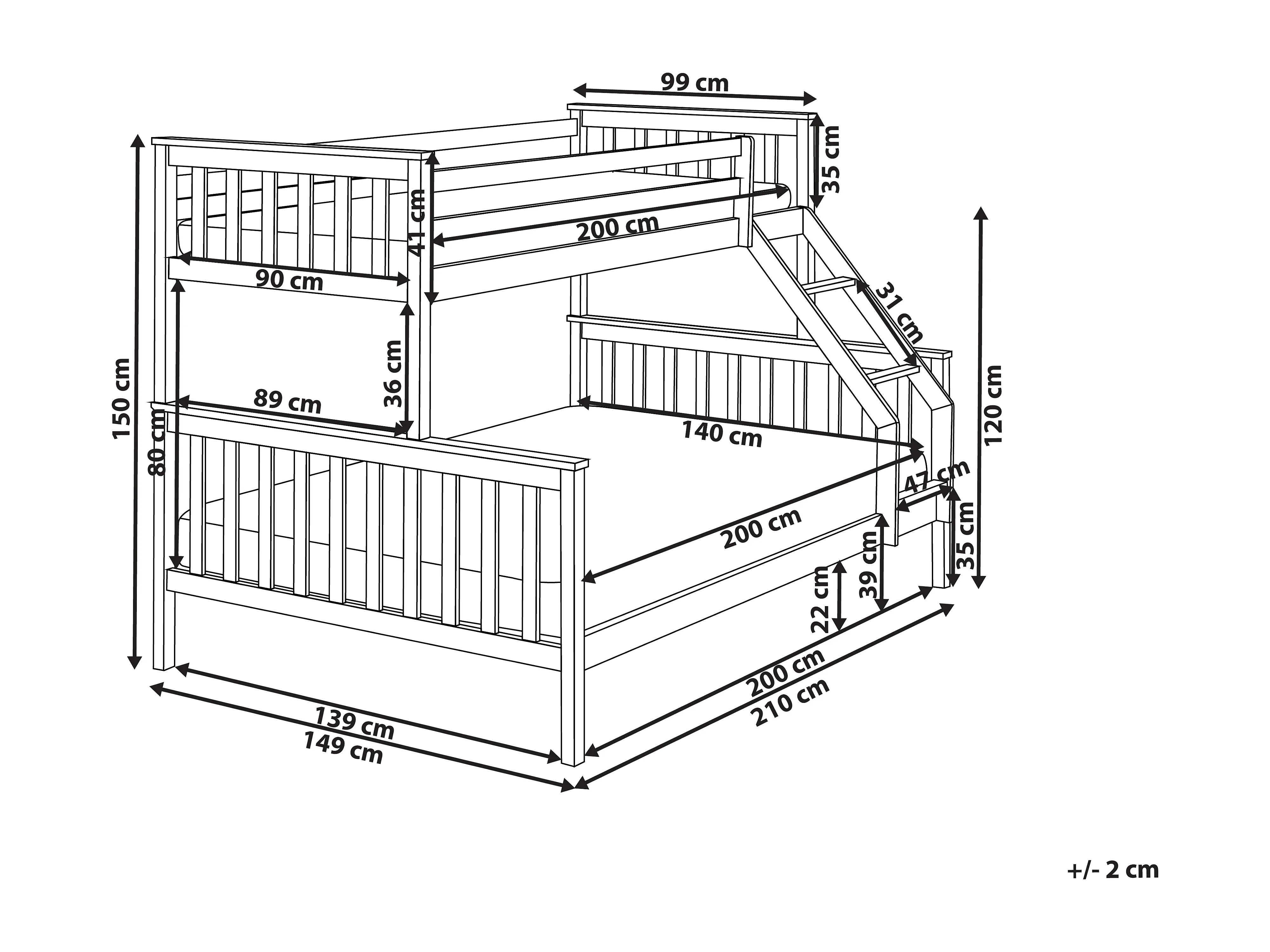 Lit superposé Bois de pin BIERNE 90/140 x 200 cm Marron clair